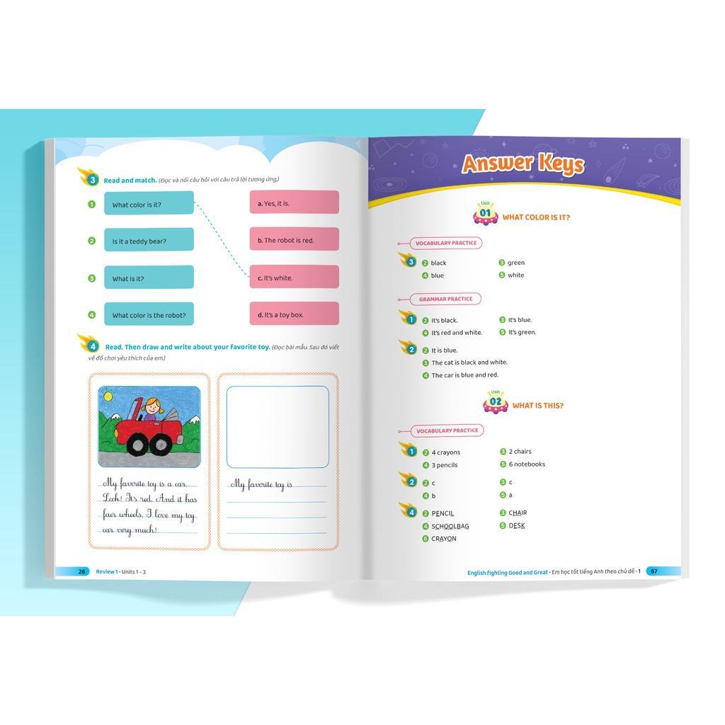 Với các chủ đề gần gũi, cấu trúc mỗi bài học chặt chẽ, English Fighting Good and Great Em học tốt tiếng Anh theo chủ đề lớp 1 sẽ là một trợ thủ đắc lực giúp các em học sinh học tốt và giỏi tiếng Anh.