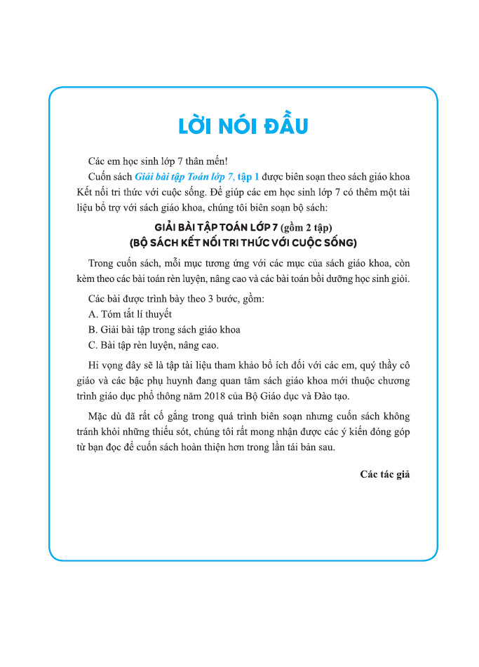 Phương Pháp Giải Bài Tập Toán 7 - Tập 1 (Dùng Kèm SGK Kết Nối Tri Thức Với Cuộc Sống) Quý Thầy, Cô cùng quý phụ huynh thân mến! Các em học sinh yêu quý!
