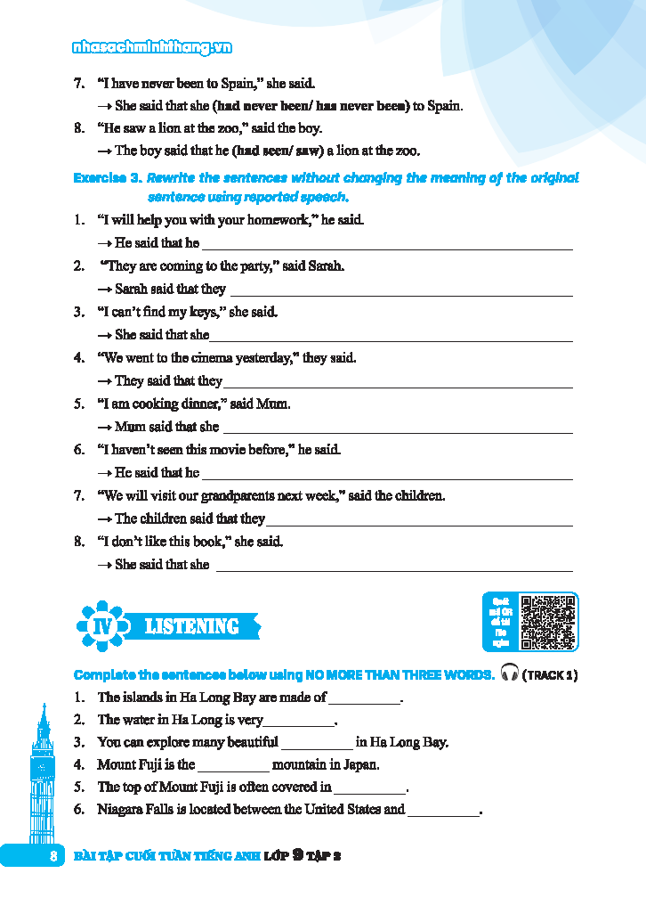 - Phần bài tập nâng cao: được thiết kế để đánh thức và phát triển kỹ năng tiếng Anh nâng cao của các em. Những bài tập ở phần này tập trung vào việc mở rộng vốn từ vựng, phát triển mạnh kiến thức ngữ pháp, rèn luyện kĩ năng đọc hiểu sâu và kĩ năng viết sáng tạo. Các em sẽ được khuyến khích tư duy linh hoạt và sáng tạo thông qua các hoạt động và bài tập đa dạng