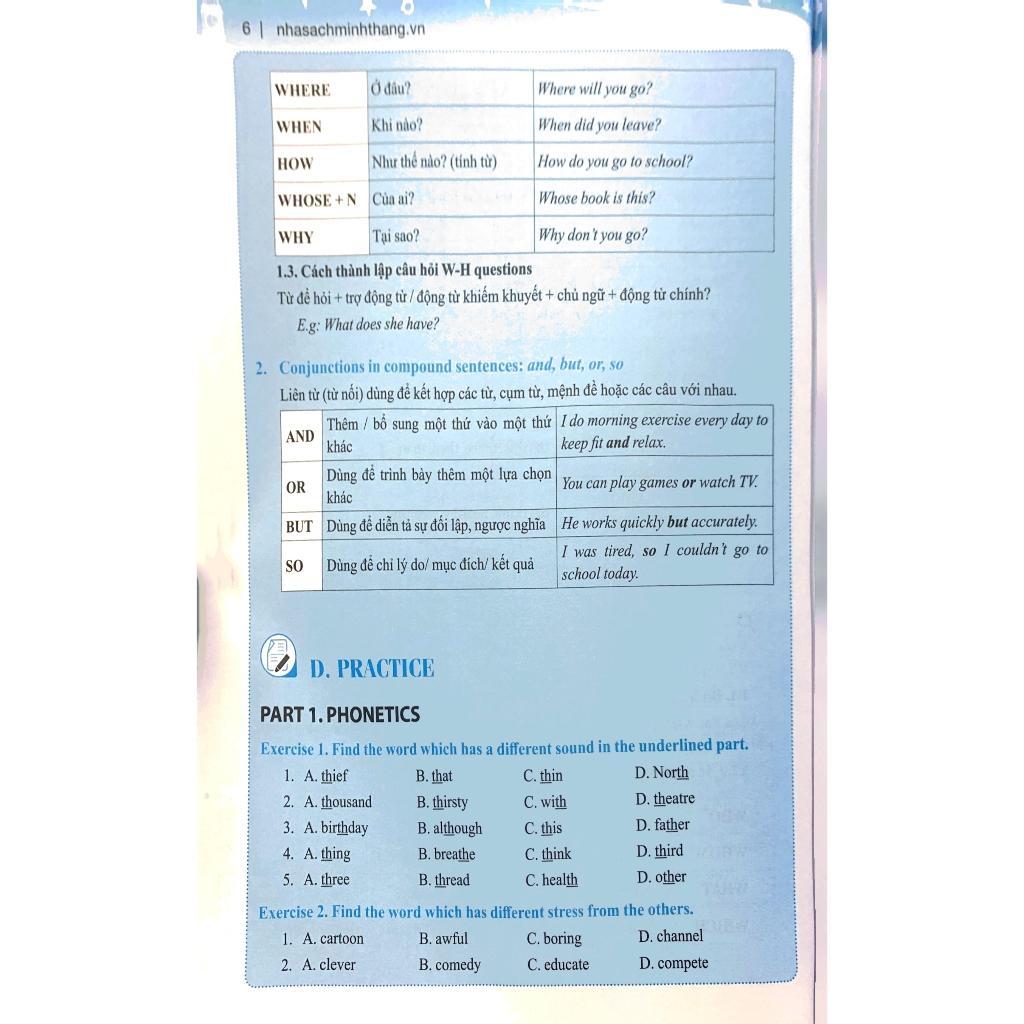 Từ vựng theo chủ đề- Cấu trúc phát triển năng lực giao tiếp ở bậc 2-2- Thì hiện tại đơn- Thì hiện tại tiếp diễn- Thì quá khứ đơn- Thì tương lai đơn- Câu đơn- Động từ tình thái (should/should not)- Câu hỏi nghi vấn (Yes/No question)- Cách so sánh (like,(not) as ... as, different from)- Đại từ sở hữu- Lượng từ không xác định: (some, lots of, a lot of ...)- Giới từ chỉ vị trí, thời gian- Từ nối (although, however)- Mạo từ xác định và không xác định…