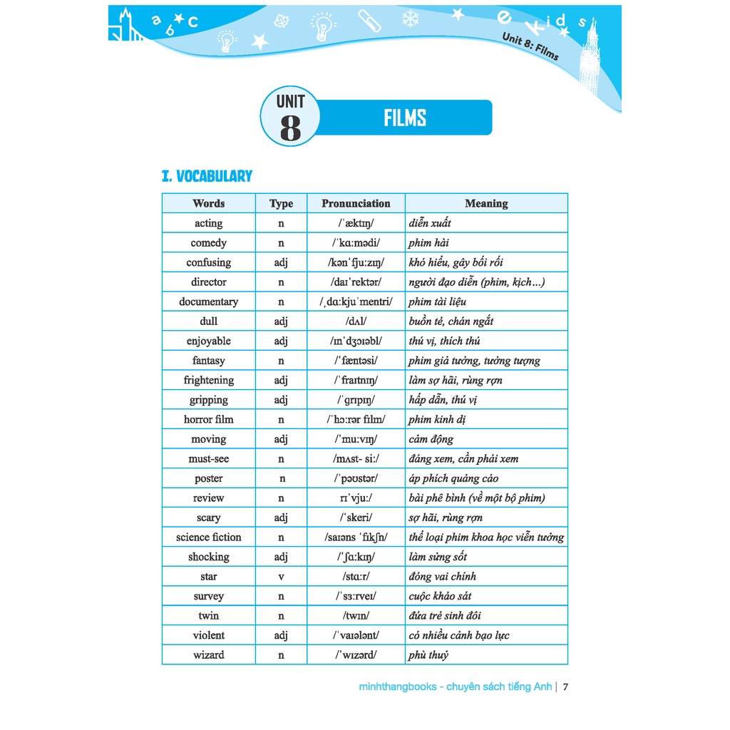 • Đề kiểm tra cuối học kỳ (kiểm tra kiến thức sau 6 đơn vị bài học)   Phần C: Đáp án   Kết hợp với nội dung trong sách là link tải đĩa CD (đính kèm trên bìa sách) phát âm chuẩn tiếng Anh của người bản ngữ. Các em có thể sử dụng điện thoại smartphone để quét mã QR và tải các bài học một cách nhanh chóng và thuận tiện. Chúng tôi tin rằng, CD này sẽ hỗ trợ các em rất nhiều trong quá trình rèn luyện kỹ năng giao tiếp tiếng Anh của mình. Hy vọng bộ sách sẽ là một nguồn tài liệu hữu ích giúp các em rèn luyện và nâng cao điểm số của mình trong kỳ thi gần nhất! Trân trọng!