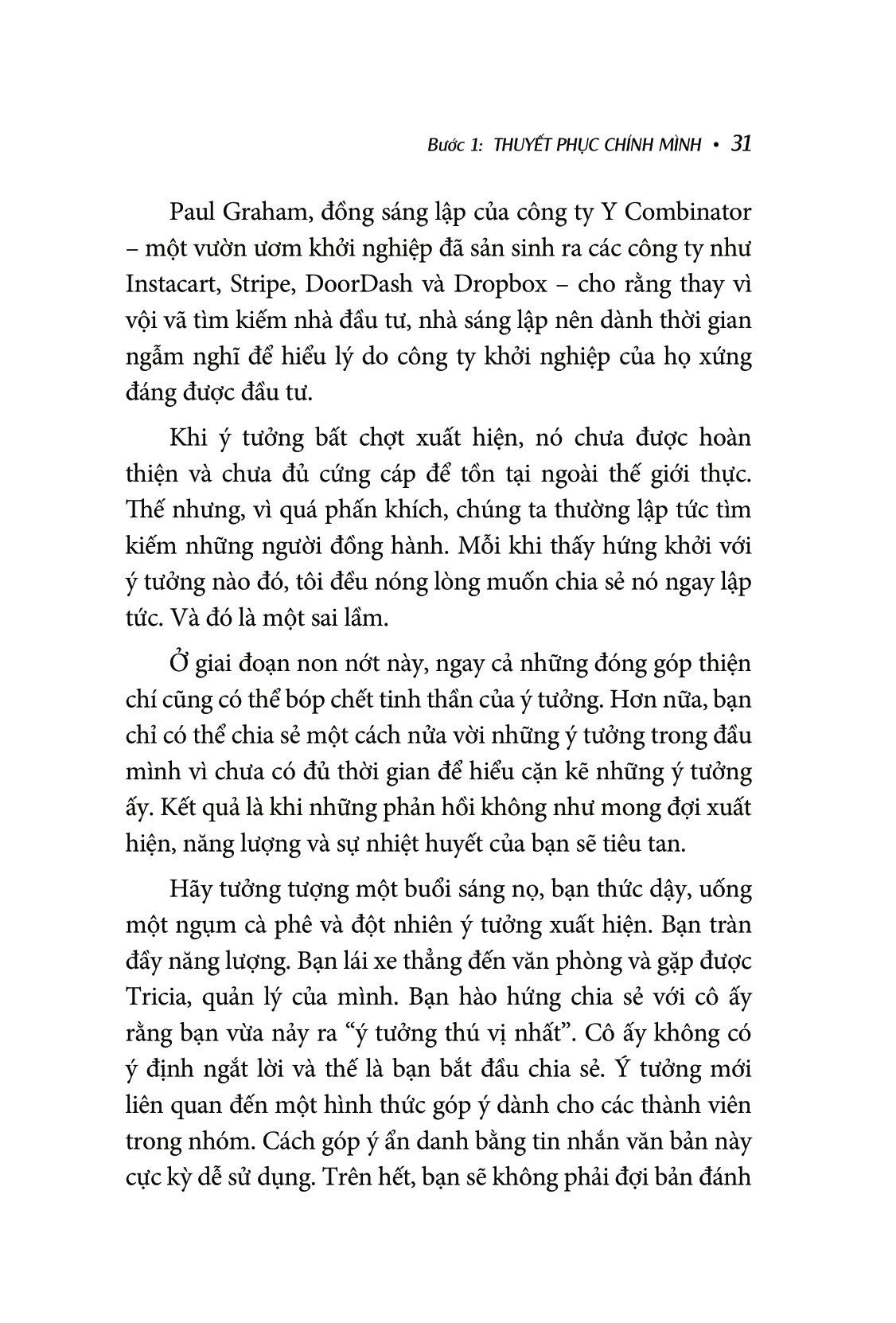 Tác giả tin rằng tất cả chúng ta đều có một ý tưởng tuyệt vời được cất giấu ở đâu đó. Tuy nhiên, hầu hết chúng ta đều sợ viễn cảnh bản thân chia sẻ ý tưởng của m.ình nhưng không được ai đoái hoài. Tất cả chúng ta đều sợ cảm giác bị phớt lờ hoặc bị xem nhẹ, như thể chúng ta không có đủ phẩm chất cần thiết để thành công. Tài năng ẩn chứa trong hầu hết chúng ta đều chưa được khai phá. Việc này không chỉ để lại một tác động tiêu cực đến hạnh phúc của chính chúng ta, mà còn đến xã hội và thậm chí là cả loài người.