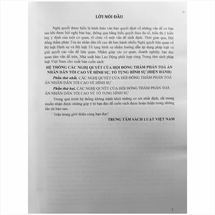 Nhà sách Nam Việt – Namvietbook xin trân trọng giới thiệu cuốn sách: Hệ Thống Các Nghị Quyết của Hội Đồng Thẩm Phán Tòa Án Nhân Dân Tối Cao về Hình Sự, Tố Tụng Hình Sự Sách Hệ Thống Các Nghị Quyết của Hội Đồng Thẩm Phán Tòa Án Nhân Dân Tối Cao về Hình Sự, Tố Tụng Hình Sự