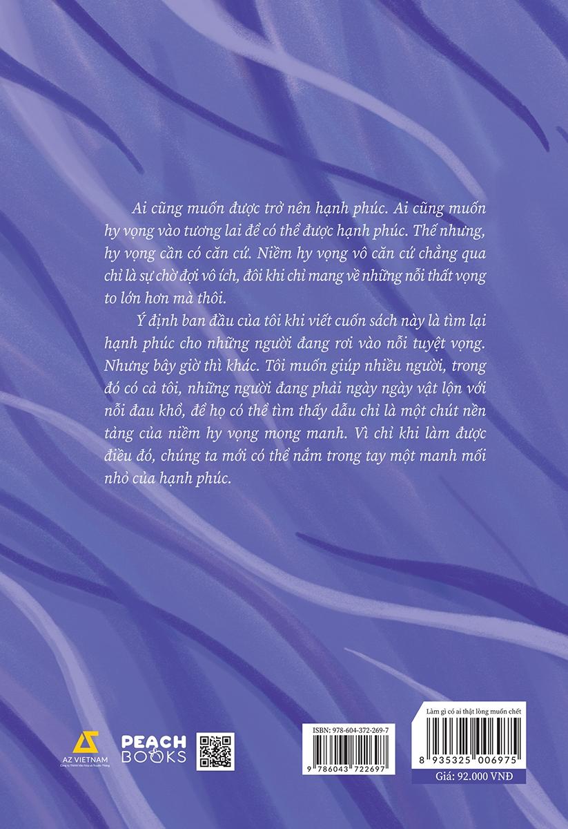 Cuốn sách này có thể giúp đỡ dù chỉ là một phần nhỏ bé cho những ai đang rơi vào tuyệt vọng, hay những người thân trong gia đình họ, trên hết là tất cả những người muốn lấp đầy từng khoảnh khắc của cuộc đời mình bằng niềm hạnh phúc.