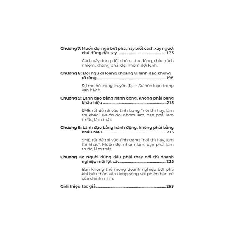 Lãnh Đạo Thật Đừng Chỉ Ngồi Ghế – Cách người điều hành xuất sắc tạo ảnh hưởng, dẫn dắt và bứt phá đội ngũ Lãnh Đạo Thật Đừng Chỉ Ngồi Ghế là cuốn sách thực tiễn và đầy cảm hứng dành cho các nhà lãnh đạo muốn bứt phá. Brian Tracy chỉ ra rằng một nhà điều hành xuất sắc không chỉ ngồi yên ra lệnh, mà cần tạo ảnh hưởng tích cực, xây dựng niềm tin và đồng hành cùng đội ngũ để vượt qua thử thách. Cuốn sách đi sâu vào: Kỹ năng giao tiếp, truyền cảm hứng và định hướng rõ ràng Xây dựng tinh thần gắn kết, tạo động lực cho nhân viên Quản lý xung đột và ra quyết định hiệu quả Phát triển văn hóa doanh nghiệp mạnh mẽ, bền vững Với phong cách viết dễ hiểu, giàu kinh nghiệm thực chiến, Brian Tracy mang đến cho bạn những công cụ thiết thực để trở thành một nhà lãnh đạo thực thụ — dám bước ra khỏi chiếc ghế chỉ huy và đồng hành cùng đội ngũ chinh phục những mục tiêu lớn. Cuốn sách phù hợp cho: Chủ doanh nghiệp, CEO Nhà quản lý cấp trung và cấp cao Người muốn nâng cao kỹ năng lãnh đạo Những ai khao khát phát triển đội nhóm vững mạnh Thông tin chi tiết cuốn sách Mã sản phẩm : 8935246957554 Năm xuất bản : 2025 Nhà xuất bản : Hồng Đức Tác giả : Brian Tracy Kích thước : 14 x 20,5 cm Số trang : 256 Công ty phát hành : Bizbooks