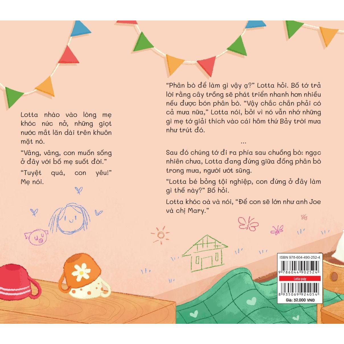Năm nay, nhà xuất bản Phụ nữ Việt Nam tiếp tục giới thiệu cho các em những cuốn sách của Astrid Lindgren – cây bút lừng danh Thụy Điển: Lotta bướng như lừa, và Lotta quậy. Nhân vật chính còn nhỏ tuổi hơn cả “lũ trẻ làng Ồn Ào”, em Lotta mới 4 tuổi, nhưng cũng hiếu động và nghịch ngợm không kém gì. Ở bộ truyện này, tác giả đã thay đổi không gian đôi chút: ba anh em nhà Lotta đại diện cho những cô, cậu nhóc sống trên thị trấn. Dẫu vậy, các em vẫn luôn được hòa nhập với thiên nhiên, được về nhà ông bà dưới quê thỏa thích.