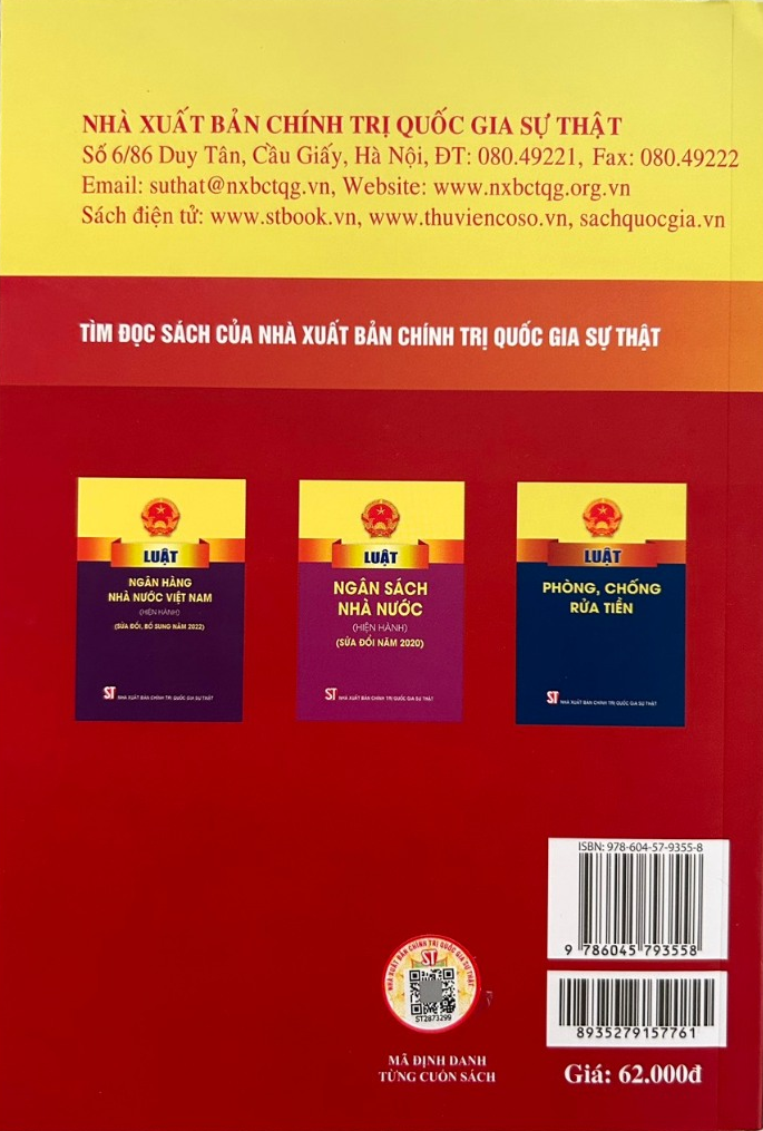Tác giả: Nhiều tác giả Nhà xuất bản: Chính trị quốc gia sự thật Chiều dài: 21cm Chiều rộng: 15cm Chiều cao: 3cm Số trang: 300 trang Luật này quy định về việc thành lập,