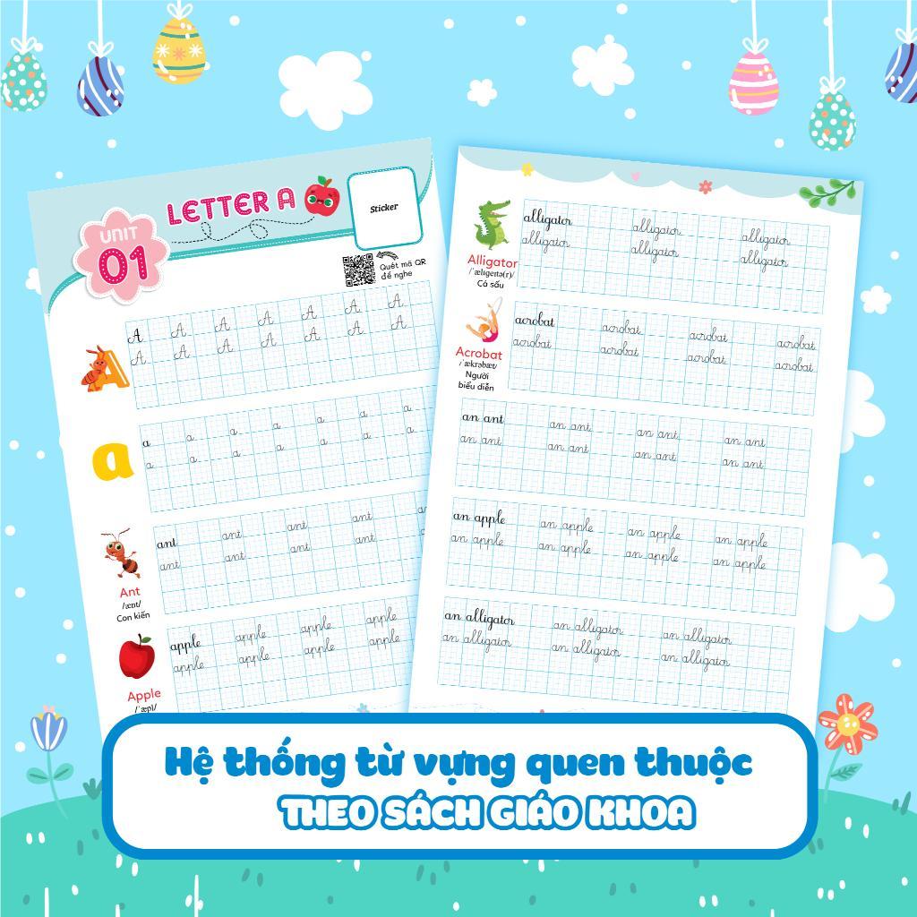 Với cuốn Luyện viết chữ đẹp tiếng Anh My Phonics giúp con luyện viết cả chữ hoa và chữ thường. Ngoài ra, con có thể dễ dàng nhớ từ vựng tiếng Anh một cách thụ động bằng cách luyện viết lặp lại nhiều lần, con sẽ nhớ nhanh và lâu hơn