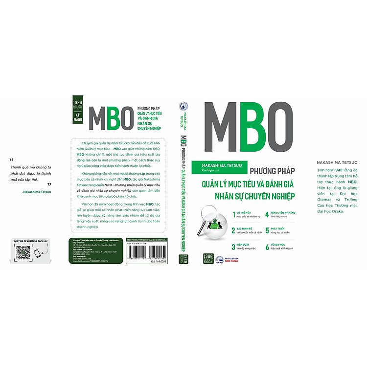 MBO – PHƯƠNG PHÁP QUẢN LÝ MỤC TIÊU VÀ ĐÁNH GIÁ NHÂN SỰ CHUYÊN NGHIỆP TÁC GIẢ: Nakashima Tetsuo Người dịch: Kim Ngân THÔNG TIN XUẤT BẢN: Giá bìa: 169,000đ Kích thước: 13 x 20,5cm Số trang: 368 Mã EAN: 8936066691642 NXB liên kết: NXB Công Thương