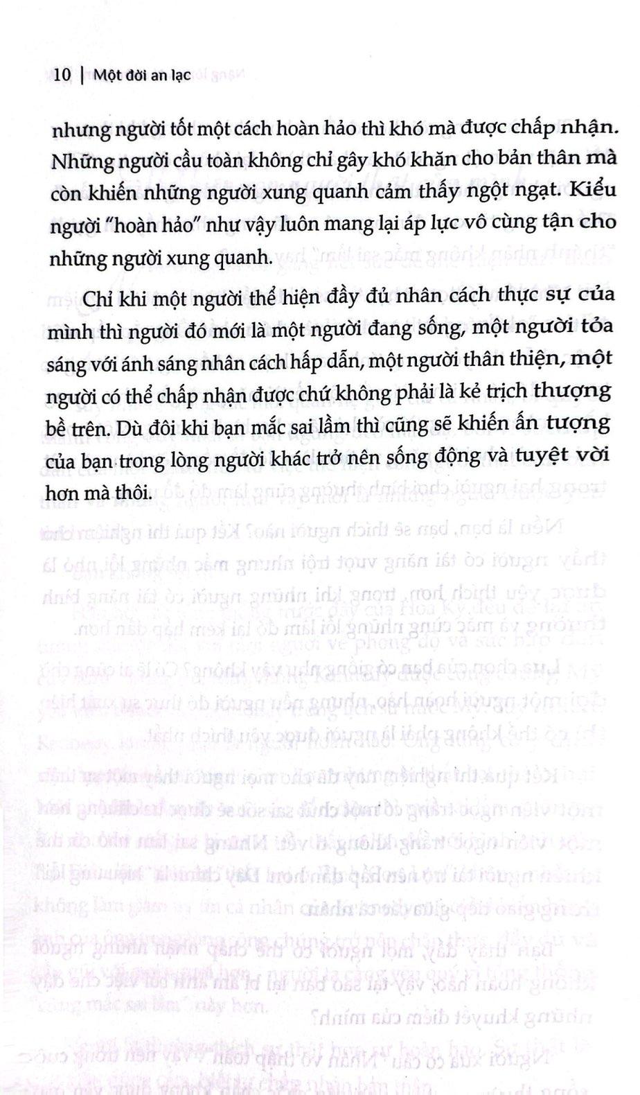 Một Đời An Lạc - Nặng Lòng Với Nhân Gian Con người ta phải sống một cuộc đời như thế nào mới xứng đáng với sinh mệnh? Cuốn sách này sẽ đi vào khám phá những vấn đề cơ bản của cuộc sống từ các khía cạnh như bản thân, ước mơ, tình yêu, hạnh phúc, đau khổ… giúp người đọc vượt qua những giai đoạn khó khăn của đời người và để họ hiểu rõ hơn về cuộc đời mà vẫn giữ được trái tim nhiệt thành với cuộc sống. Những lời thủ thỉ trong sách sẽ khiến bạn chợt bừng sáng, giải tỏa những phiền não, cảm nhận được sức mạnh của cuộc sống và khiến bạn nhận ra rằng “Đây là cuộc đời của chính m.ình”. Chỉ cần sống một cuộc đời của chính m.ình, bạn sẽ thấy rằng “Cuộc đời này thật đáng sống”!