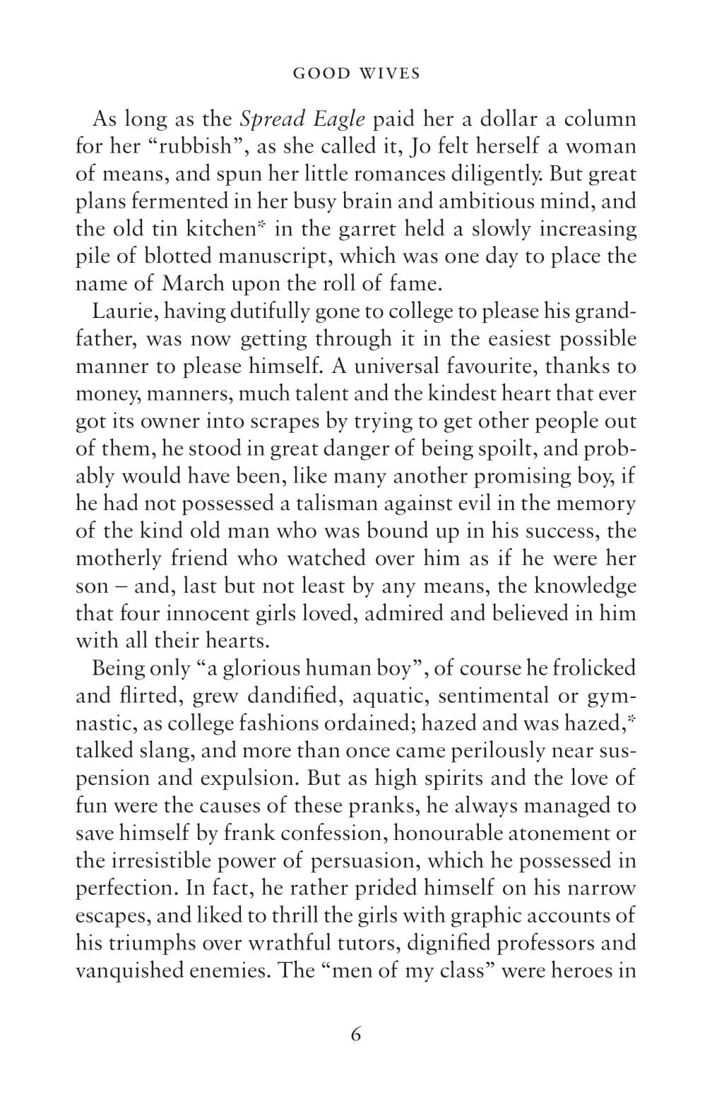 Following on the immediate commercial success of Little Women, Good Wives completes the story of the March sisters and their friend Laurie, and is, together with its prequel, Louisa May Alcott's crowning achievement and one of the most popular young-adult tales ever written.