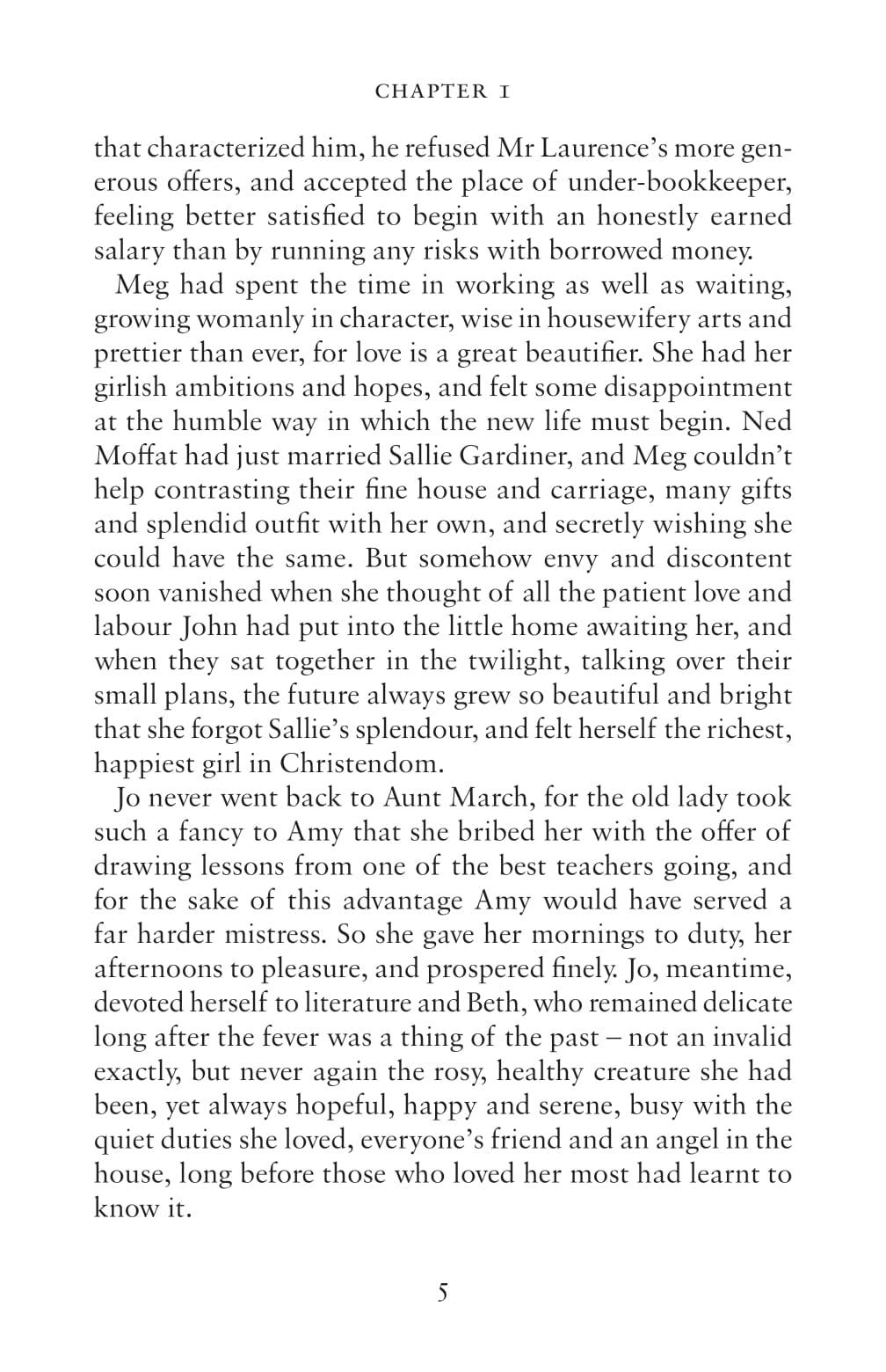 Three years have passed since the events narrated in Little Women, and the four March sisters are approaching adulthood, with all its accompanying challenges and expectations. Meg is preparing for her wedding, Beth continues to struggle with her health, Jo is more than ever devoting herself to literature and Amy is about to go on a tour of Europe with her aunt. Their experiences, hopes and ambitions are set in counterpoint to each other, until the whole family is brought together by tragedy and misfortune.