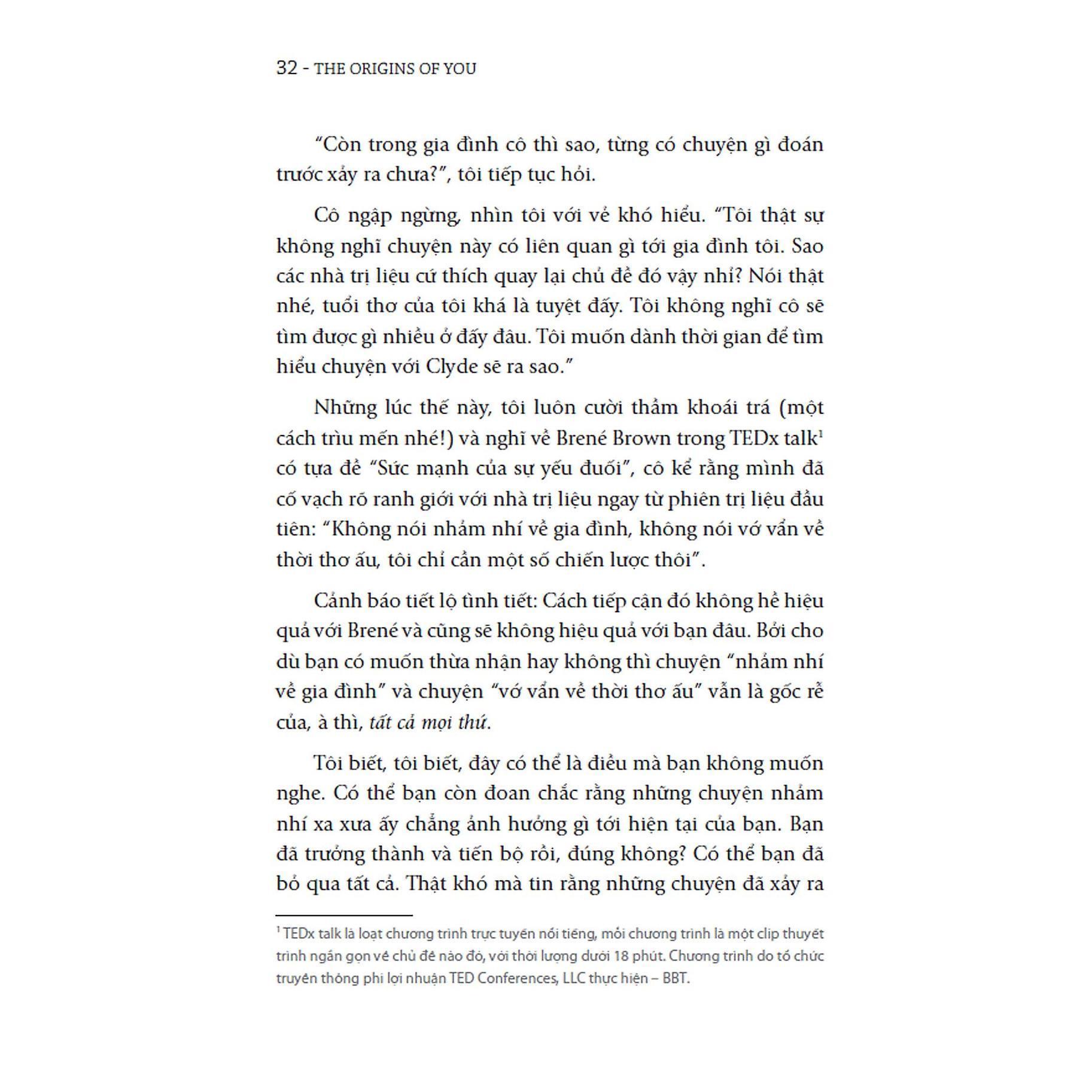 Trong cuốn sách “Phá vỡ khuôn mẫu” (tựa gốc: The Origins of You), tác giả Vienna Pharaon, nhà trị liệu hôn nhân và gia đình sẽ từng bước dẫn dắt bạn tìm hiểu về vết thương cội nguồn của mình. Tác giả cũng sẽ giúp bạn đi tìm nguyên nhân vì sao những câu chuyện, những mối quan hệ trong gia đình vẫn tiếp tục ảnh hưởng đến cuộc sống hiện tại và tương lai của bạn, của con cái bạn; và cách áp dụng phương pháp Chữa lành tận gốc để bạn thoát ra khỏi khuôn mẫu này.