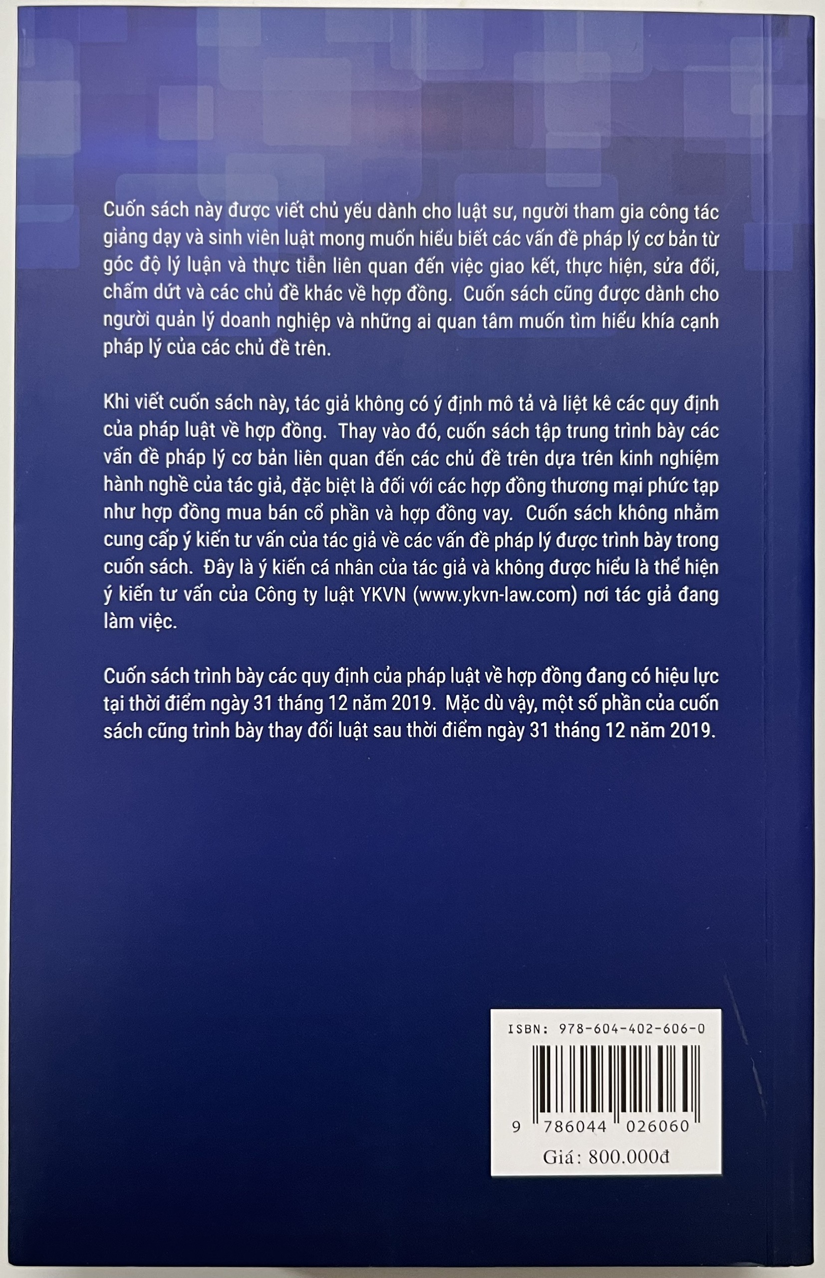 Công ty phát hành: Công ty TNHH Sách Á Châu Tác Giả: Trương Nhật Quang NSX - NXB: Dân Trí Ngôn Ngữ: Tiếng Việt Loại Sản Phẩm: SÁCH CHÍNH TRỊ - PHÁP LÝ Kích Thước: 16 x 24 cm Hình Thức: Bìa mềm Số Trang: 880 Năm Xuất Bản: 2024 Sách Pháp luật về hợp đồng – Các vấn đề pháp lý cơ bản do Luật sư Trương Nhật Quang biên soạn. Trương Nhật Quang là luật sư điều hành công ty luật YKVN và phụ trách bộ phận tư vấn luật tài chính ngân hàng của YKVN.  Luật sư Trương Nhật Quang điều hành YKVN từ năm 1999. Trước khi làm việc tại YKVN, Luật Sư Trương Nhật Quang đã làm việc tại công ty luật Mỹ WHite & Case từ năm 1994 đến năm 1999 Cuốn sách đầu tiên nghiên cứu một cách có hệ thống các vấn đề pháp luật về hợp đồng của Việt Nam từ góc độ lý thuyết và thực tiễn, tập trung vào các giao dịch tài chính và mua bán doanh nghiệp có yếu tố nước ngoài. Cuốn sách được trình bày với cấu trúc chương mục như sau: Chương 1. Giới thiệu chung về hợp đồng