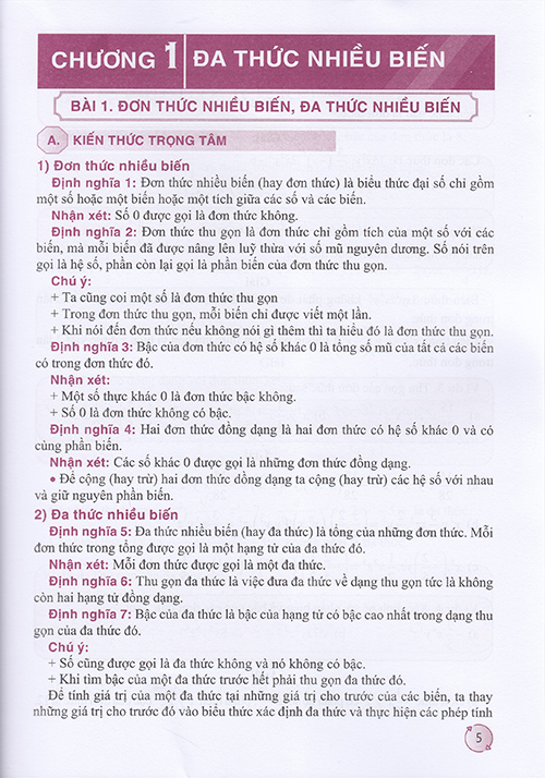Nội dung của mỗi bài học đó là các định nghĩa, các công thức toán học, các định lí mà mỗi học sinh cần nhớ, đồng thời phải biết vận dụng các kiến thức để