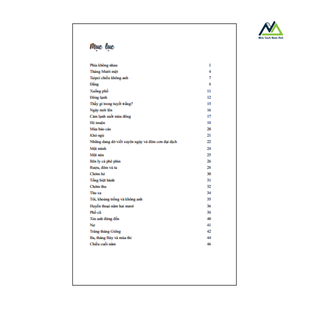 “Phía Không Nhau” là tập thơ – tản văn chứa đựng những nỗi niềm sâu lắng về tình yêu, sự chia xa và những khoảng trống trong tâm hồn. Với giọng văn tinh tế, mộc mạc mà day dứt, Hannah Hoang đưa người đọc đi qua những mùa nhớ, những tháng ngày cô đơn, xen lẫn kỷ niệm về gia đình, quê hương và tuổi trẻ. Trong từng trang sách, bạn sẽ bắt gặp chính mình – trong một buổi chiều phố cũ, trong một cơn mưa bất chợt, trong khoảng lặng nhớ thương ai đó đã từng rất gần mà giờ đã xa. “Phía Không Nhau” không chỉ là cuốn sách để đọc, mà là một người bạn đồng hành để sẻ chia, để lắng nghe và để chữa lành. Một lựa chọn tuyệt vời cho những ai yêu thơ ca, thích sự chiêm nghiệm nhẹ nhàng nhưng sâu sắc.