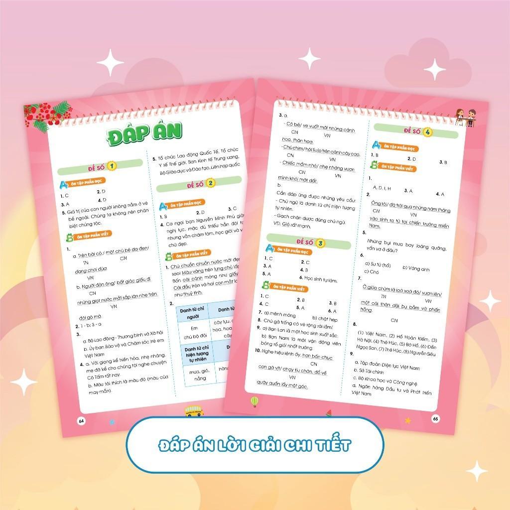 - 20 bộ đề đa dạng Cuốn sách bao gồm 20 bộ đề, mỗi bộ đề gồm 2 phần Phần đọc và Phần viết. Điều này giúp các em thực hành và nắm vững kiến thức thông qua các dạng bài tập khác nhau. Sự đa dạng này cũng giúp rèn luyện khả năng tư duy, suy luận và kích thích trí tưởng tượng của các em nhỏ. Phần viết của cuốn sách cũng giúp các con luyện chính tả, phân biệt được các chữ cái, từ, các vần dễ bị nhầm lẫn thường gặp