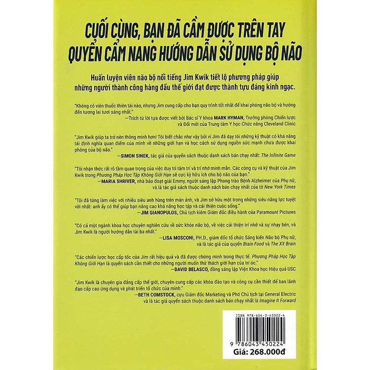 Trong hơn 25 năm, Jim Kwik đã được làm việc gần gũi với những người đàn ông và phụ nữ thành đạt, những chuyên gia hàng đầu trong lĩnh vực của họ với tư cách là diễn viên, vận động viên, CEO và các nhà lãnh đạo doanh nghiệp từ mọi tầng lớp xã hội để khai phá tiềm năng thực sự của họ. Trong cuốn sách đột phá này, ông tiết lộ các phương pháp thực hành dựa trên khoa học và các mẹo đã được kiểm nghiệm thực tế để tăng tốc quá trình tự học, giao tiếp, ghi nhớ, tập trung, nhớ lại và tốc độ đọc, để tạo ra kết quả nhanh, hiệu quả nhất.