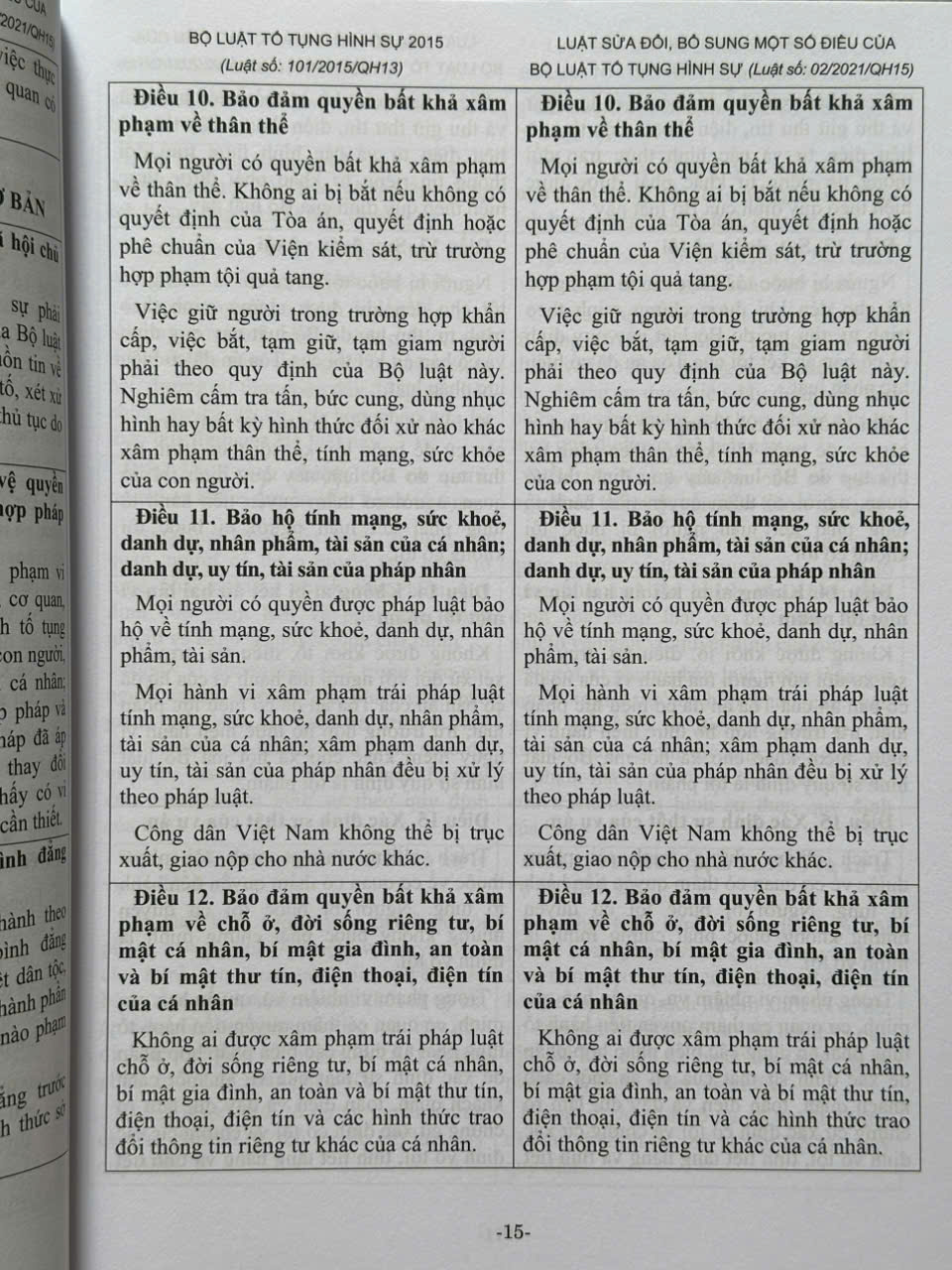 Phần I. So sánh đối chiếu Bộ luật Tố tụng hình sự 2015 – 2021