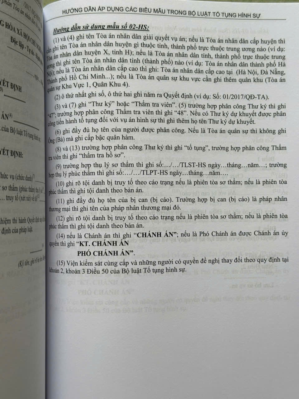 Phần II. Hướng dẫn áp dụng các biểu mẫu trong Bộ luật Tố tụng hình sự