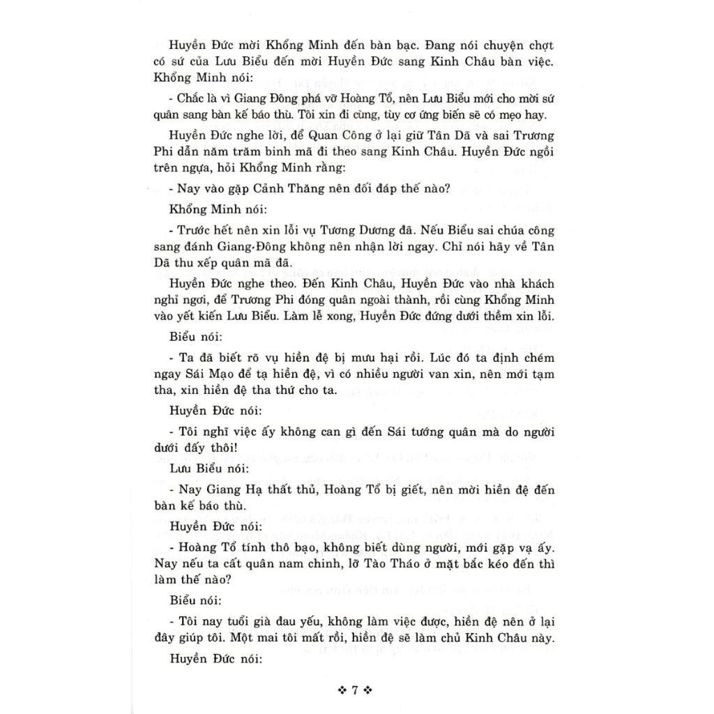 TAM QUỐC DIỄN NGHĨA tên đầy đủ là TAM QUỐC CHÍ THÔNG TỤC DIỄN NGHĨA, là tiểu thuyết lịch sử chương hồi nổi tiếng của Trung Quốc cổ đại do nhà văn La Quán Trung sống vào khoảng cuối đời Nguyên đến cuối đời Minh. Bản Tam Quốc lưu truyền rộng rãi nhất ngày nay là bản do Mao Tôn Cương tu sắc và bình chú.