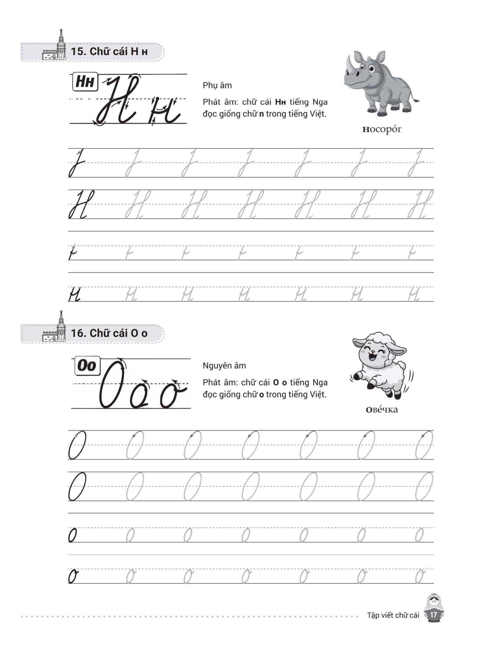 - Làm quen với bảng chữ cái Cyrillic (viết thường và viết hoa).