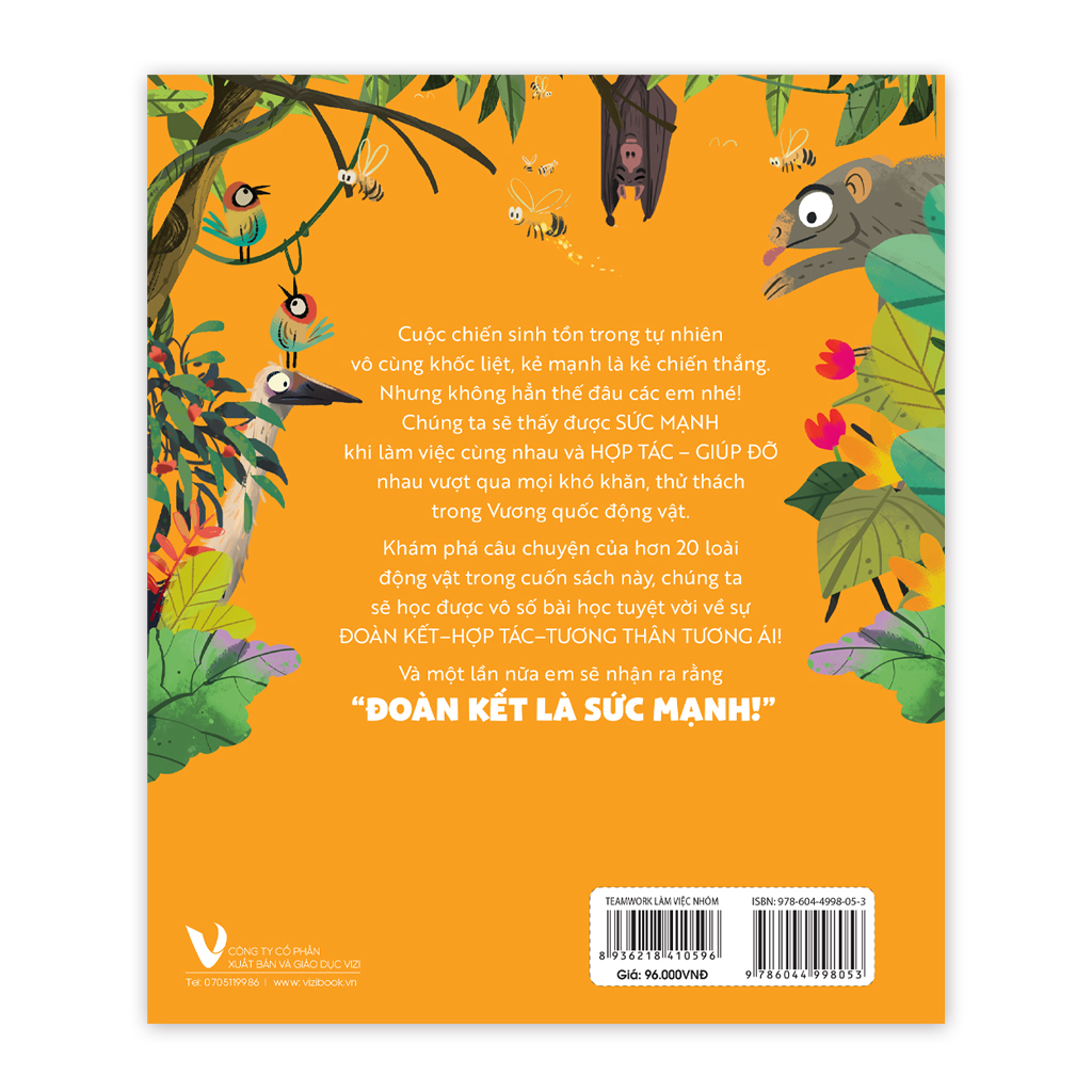 Bằng những câu chuyện thú vị và những bài học ý nghĩa về tinh thần hợp tác trong thế giới động vật, cuốn sách “Teamwork Làm Việc Nhóm – Bài Học Từ Vương Quốc Động Vật” mở ra cho trẻ góc nhìn mới mẻ về sức mạnh của sự đồng hành, nơi mà mỗi cá nhân đều có vai trò quan trọng và cùng nhau có thể tạo nên những điều kỳ diệu!