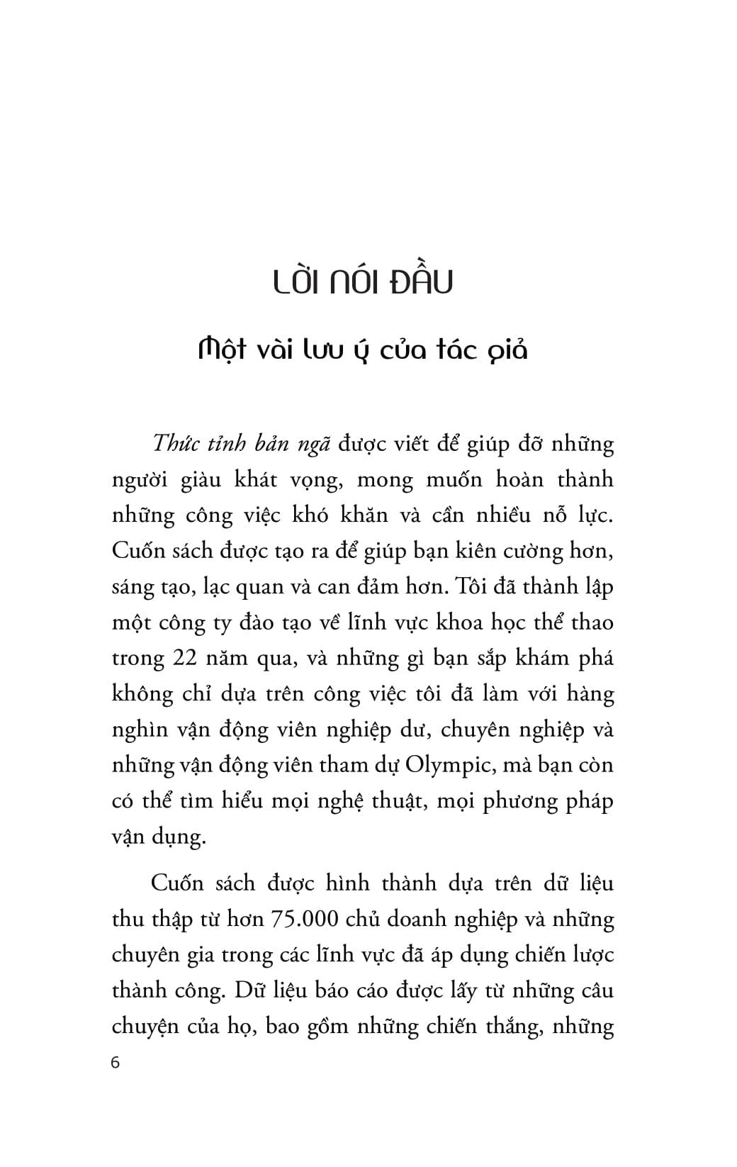 Không chỉ là một cuốn sách về tư duy tích cực “Thức tỉnh bản ngã” là một phương pháp thực chiến để bạn khai mở tiềm năng bị chôn giấu, đối diện với áp lực và tỏa sáng trong bất kỳ “sân chơi” nào của cuộc đời - từ công việc, thể thao đến nghệ thuật. Đọc xong cuốn sách này, bạn sẽ có thể: