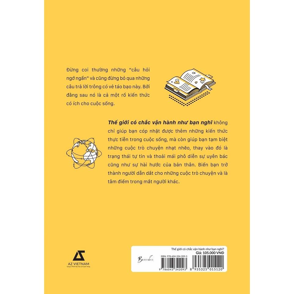 Thay vì những lý thuyết khô khan, “Thế giới có chắc vận hành như bạn nghĩ?” sẽ đem đến một lượng thông tin khổng lồ, vừa hài hước, vừa bổ não thuộc mọi lĩnh vực từ sinh vật học, chiêm tinh học đến khoa học cơ thể con người, đời sống văn hóa trên thế giới. Thông qua cuốn sách bạn sẽ nhận ra: