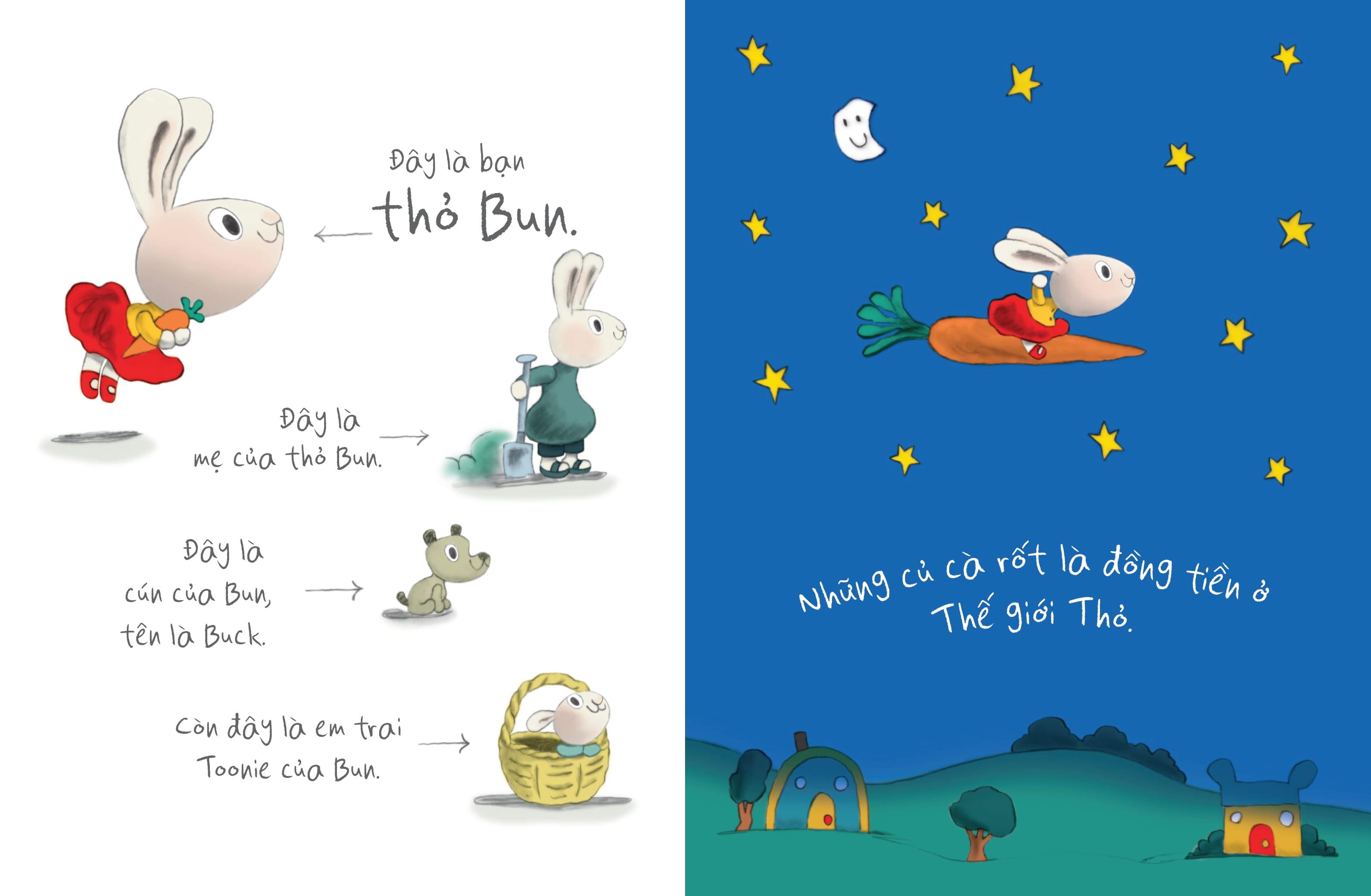 Bạn thỏ Bun thích hát - và bạn biết m.ình sẽ trở thành một siêu sao. Bun lúc đầu có chút thất vọng khi mẹ nói với bạn rằng những điều kì diệu, chẳng hạn như khu vườn tốt tươi của gia đình bạn, thường cần thời gian và công sức. Nhưng sau khi tính toán về sự nghiệp ca hát của m.ình và mơ về nó, Bun thấy hào hứng và muốn nỗ lực đạt được ước mơ ấy - một nỗ lực mang lại niềm vui cho cô bé. Thỏ Bun muốn trở nên NỔI TIẾNG và GIÀU CÓ! Liệu điều đó có tới chỉ sau một đêm? Không thể nào! Vậy thỏ Bun phải tìm cách kiếm tiền? Đúng thế!