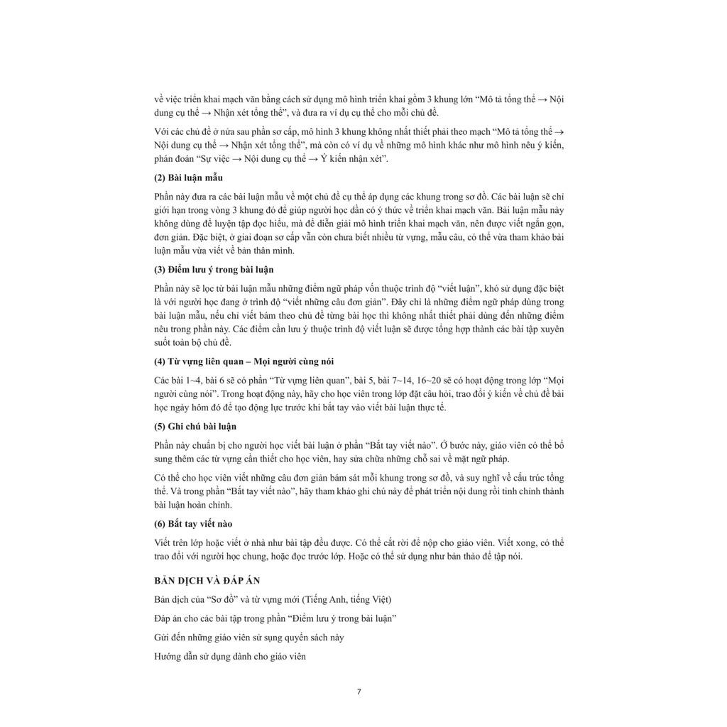 Giới thiệu chung về sách: Sách nằm trong bộ Minna no Nihongo - Tiếng Nhật dành cho mọi người - Bản mới. Là sách bổ trợ giúp người học nâng cao kỹ năng viết, trình bày suy nghĩ của bản thân về nhiều chủ đề khác nhau. Người học bắt đầu với việc luyện tập nắm bắt cấu trúc tổng thể và lên sơ đồ mạch văn. Với việc viết đi viết lại nhiều đề tài khác nhau, người học sẽ tự nhiên ý thức được về cấu trúc tổng thể, từ đó có thể áp dụng được cho cả kỹ năng nói và đọc hiểu.