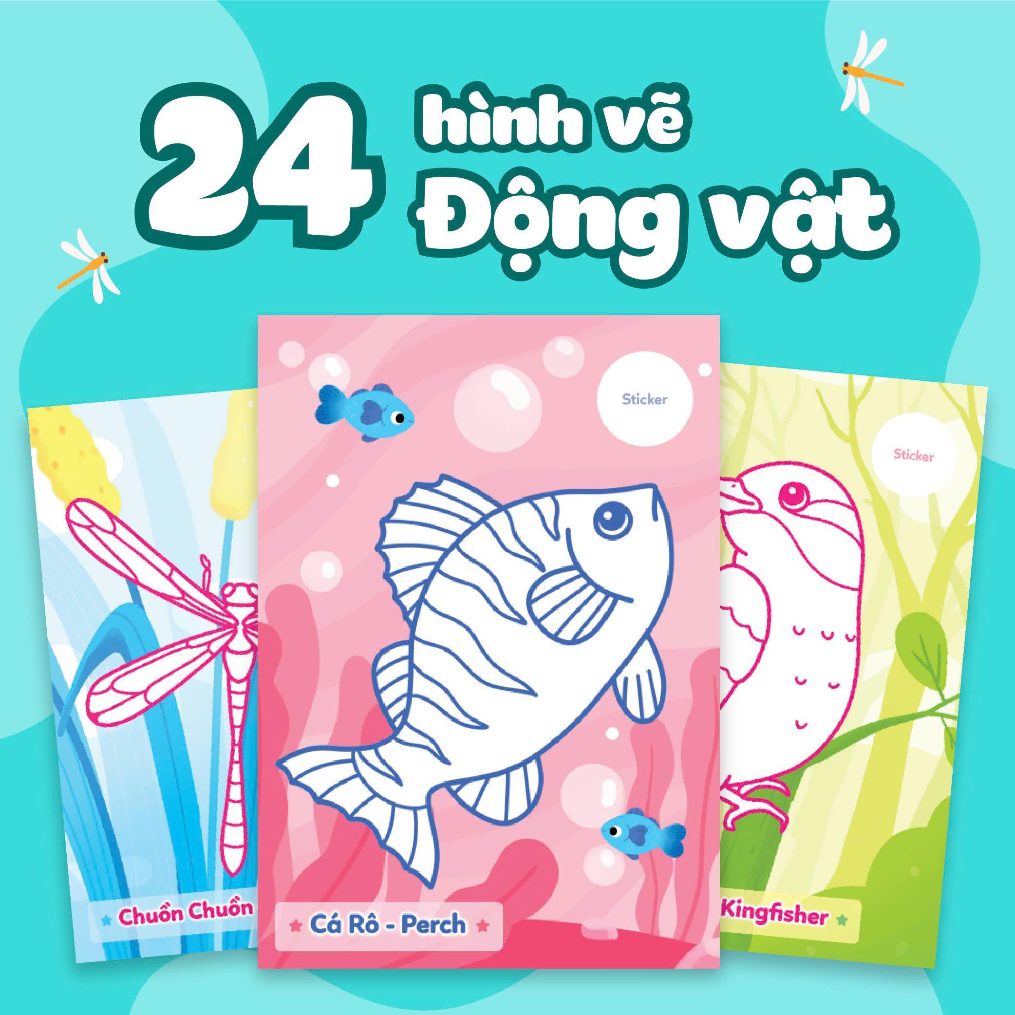 Bộ sách "Tô màu khám phá" gồm 5 cuốn: "Hồ nước trong xanh," "Nông trại vui vẻ," "Thành phố nhộn nhịp," "Thủy cung bí ẩn," và "Vườn thú ngộ nghĩnh. Sách phù hợp với trẻ lứa tuổi từ 3 đến 6 tuổi. Với những cuốn sách này các bé không chỉ thỏa sức tô màu mà còn giúp các em học hỏi và khám phá thế giới muôn màu sắc. Được thiết kế với màu sắc sinh động, sách kích thích sự sáng tạo của trẻ, đồng thời đi kèm với sticker động vật, giúp các em hình dung rõ nét về các loài vật. Hơn nữa, sách còn cung cấp tên gọi bằng tiếng Việt và tiếng Anh cho từng con vật theo chủ đề, giúp trẻ mở rộng hiểu biết về thế giới và học thêm một ngôn ngữ mới - tiếng Anh.