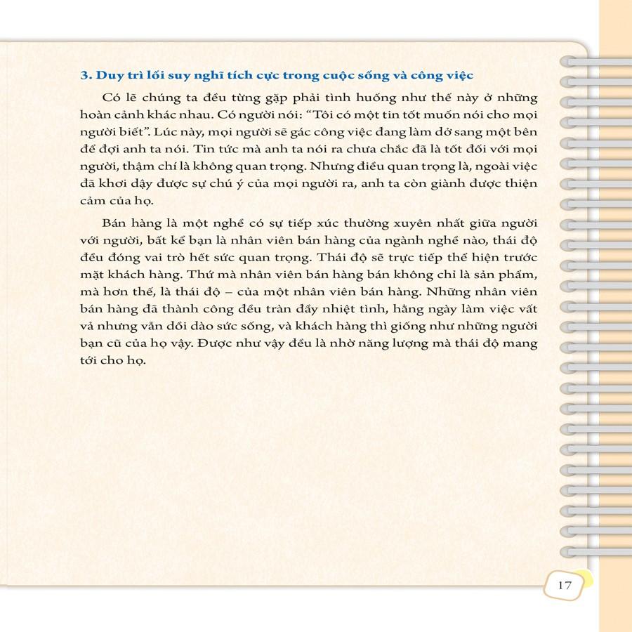 Tác giả : Du Lượng Dịch giả :Đỗ Thu Thuỷ NXB: NXB Thanh Niên Kích thước : 17x23cm Năm xuất bản : 2019 Số trang : 271 Khối lượng : 500 grams Bìa : bìa mềm Dưới đây là những tố chất của một nhân viên bán hàng xuất sắc: Có khả năng chào hàng tốt. Không sợ khổ, không ngại dãi nắng dầm mưa. Không thích ngồi lì ở văn phòng, chỉ muốn trực tiếp mang sản phẩm đến giới thiệu với khách hàng. Quan tâm tới mỗi khách hàng như là người bạn tốt nhất của mình. Bạn thấy bản thân mình đạt được bao nhiêu trong số những yếu tố kể trên? Điều khách hàng quan tâm trước tiên là thái độ của bạn, sau đó mới đến sản phẩm của bạn