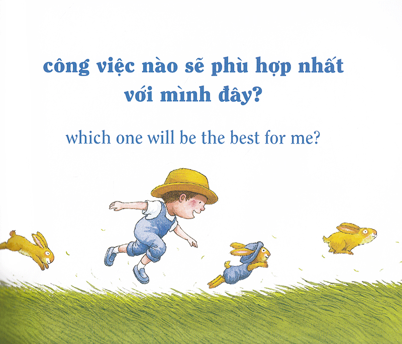 Với cuốn sách song ngữ xinh đẹp này, các bé sẽ được chìm đắm trong thế giới của riêng mình, nơi trí tưởng tượng bay xa và các em có thể làm bất cứ việc gì mà mình thích. Chưa hết, ba mẹ và các bé sẽ khám phá ra tên gọi của rất nhiều “công việc” trong tiếng Anh, và sau cùng bé sẽ chọn công việc nào nhỉ? Câu trả lời sẽ có trong “Mình có thể làm bất cứ việc gì! – I can be anything!” – Cuốn sách tuyệt vời mô tả thế giới trong đôi mắt trẻ thơ