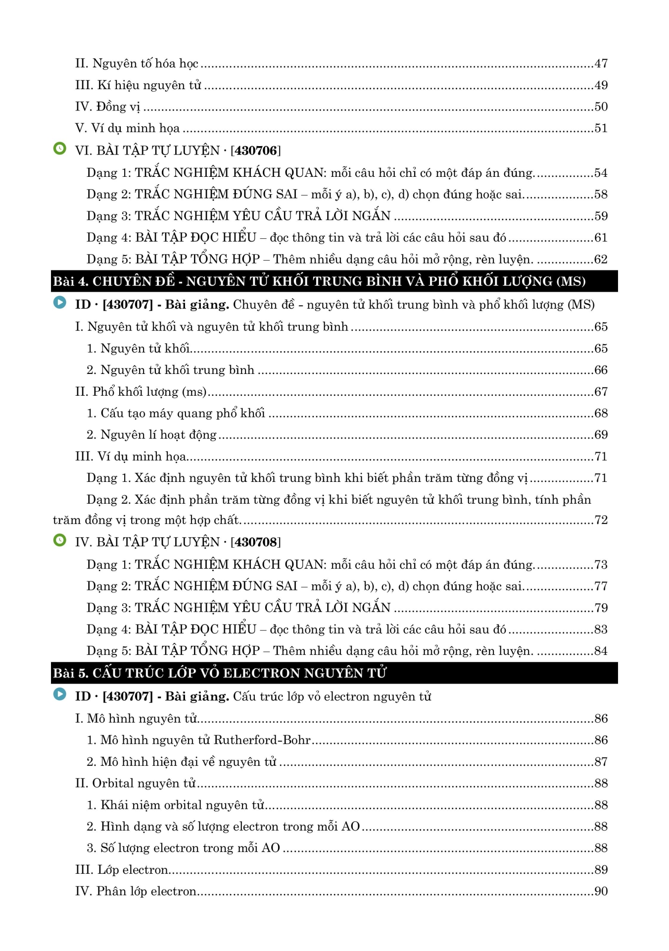 - Chủ đề 1: Cấu tạo nguyên tử - Chủ đề 2: Bảng tuần hoàn các nguyên tố hoá học - Chủ đề 3: Liên kết hoá học - Chủ đề 4: Phản ứng oxi