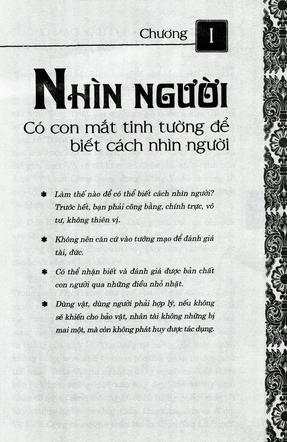 Nội dung của “Thuật quản trị” sẽ giúp bạn có con mắt tinh đời để biết cách nhìn người. Vậy làm thế nào để có thể nhận biết người tốt kẻ xấu? Điều kiện tiên quyết nằm ở việc bạn phải công bằng, chính trực, vô tư, không thiên vị…