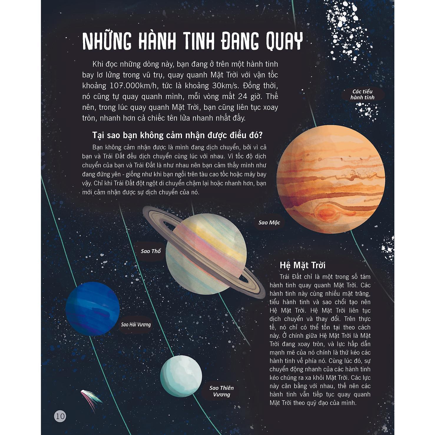 Tác giả: Lời: Anna Claybourne; Minh họa: Sarah Edmonds Dịch giả: Thu Trang Độ tuổi: Dành cho độ tuổi 6-12 Kích thước: 20,5x25 Nhà xuất bản: NXB Thanh Niên Năm xuất bản: 2024 Số trang: 64 trang ruột + trang bìa 3 (xinhe) Mọi lúc, mọi nơi xung quanh chúng ta, vạn vật liên tục biến đổi. Ngày chuyển thành đêm, rồi đêm lại hóa thành ngày. Mặt Trăng đi ngang qua bầu trời, mỗi đêm trông lại một khác. Thủy triều rút đi và dâng lên, cây trồng nảy mầm và phát triển, chim chóc nở ra từ trứng, ngắm nhìn thế giới lần đầu tiên. Bốn mùa thay đổi, mỗi mùa lại có một kiểu thời tiết khác nhau. Điều này giúp chúng ta quyết định mình nên làm gì và nên đi đâu khi ngày tháng dần trôi.
