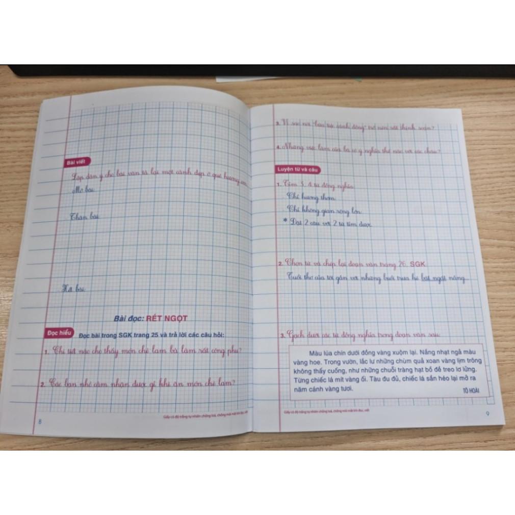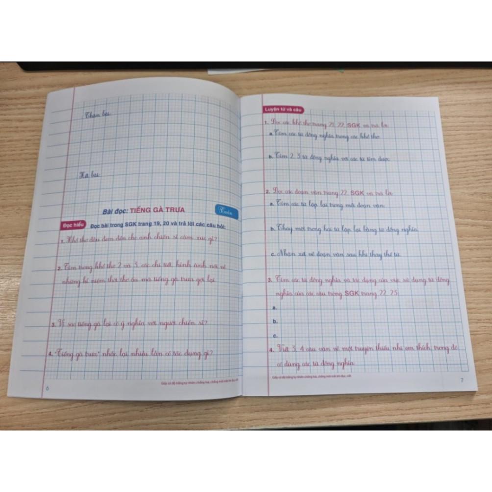 tVới 2 bài học, mỗi tuần gồm các câu hỏi và bài tập được trình bày trên giấy ô li bằng kiểu chữ tiểu học hiện hành sẽ giúp các em vừa rèn được kĩ năng trả lời câu hỏi vừa rèn viết chữ được sạch, đẹp, trình bày rõ ràng.