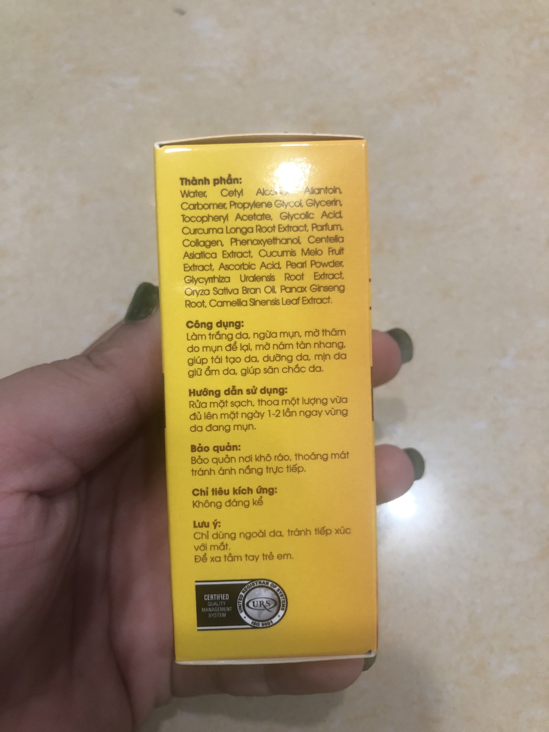 Serum hỗ trợ điều trị nám - tàn nhang: - Thành phần: Aqua, Aloe Barbadensis Leaf Juice, Glycerin, Triethanolamine (1,0 %), Phellodendron Amurense Bark Extract, Carbomer, Tocopheryl Acetate, Hydrolyzed Collagen, Boric Acid (0,5 %), Salicylic