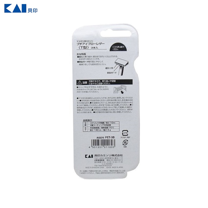 Thương hiệu Kai Xuất xứ: Nhật Bản Quy cách: 1 bịch 3 cây Lưỡi dao: Nhật Bản Thành Phần: - Lưỡi dao được làm từ thép không gỉ. - Thân dao được làm từ nhựa