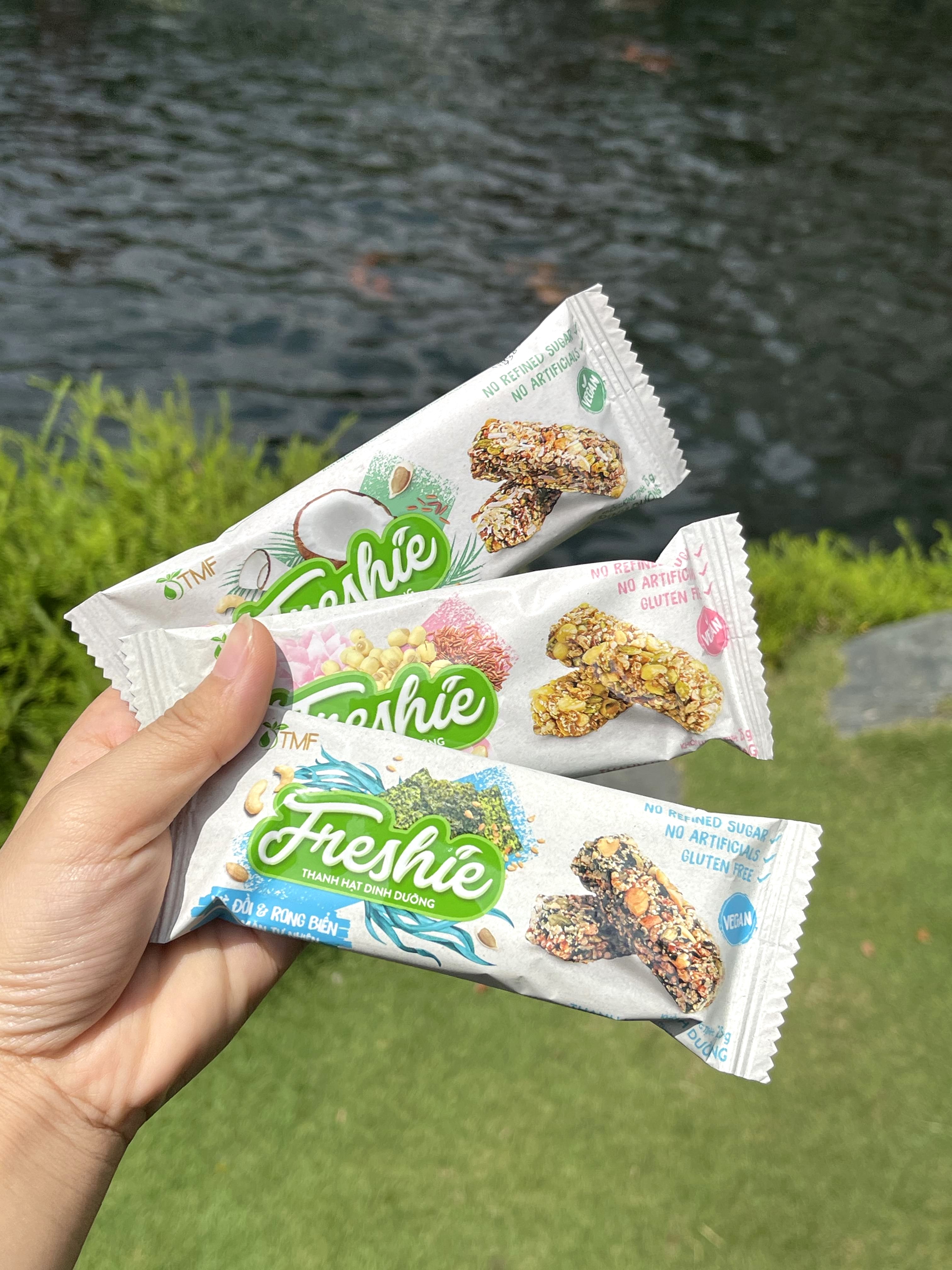Thanh hạt dinh dưỡng Freshie được làm từ các nông sản thuần Việt, không chứa đường tinh luyện, không hương liệu và chất bảo quản, an toàn cho sức khỏe. Với thông điệp You’re fresh, You’re the best, Năng lượng tươi mới - khởi sự tuyệt vời, thanh hạt dinh dưỡng Freshie là sự lựa chọn hoàn hảo, bổ sung năng lượng trước khi bắt đầu bất kỳ hoạt động nào; giúp bạn trở nên năng động và có một khởi đầu tuyệt vời hơn bao giờ hết. Hãy thử Freshie và cảm nhận sự khác biệt nhé!