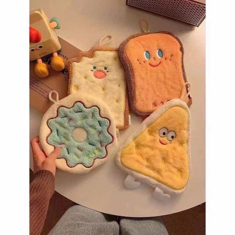 ✨Set 4 Khăn Lau Tay Thấm Hút Tốt Hoạ Tiết Bánh Mỳ Phô Mai Cute- Chiếc Khăn Lau Tay Mềm Mịn Thấm Hút