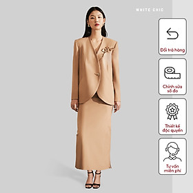 ✨Set áo blazer nữ vạt buông tròn đính kèm hoa cài thủ công & váy bút chì OLIVE thiết kế cao cấp WHITE CHIC