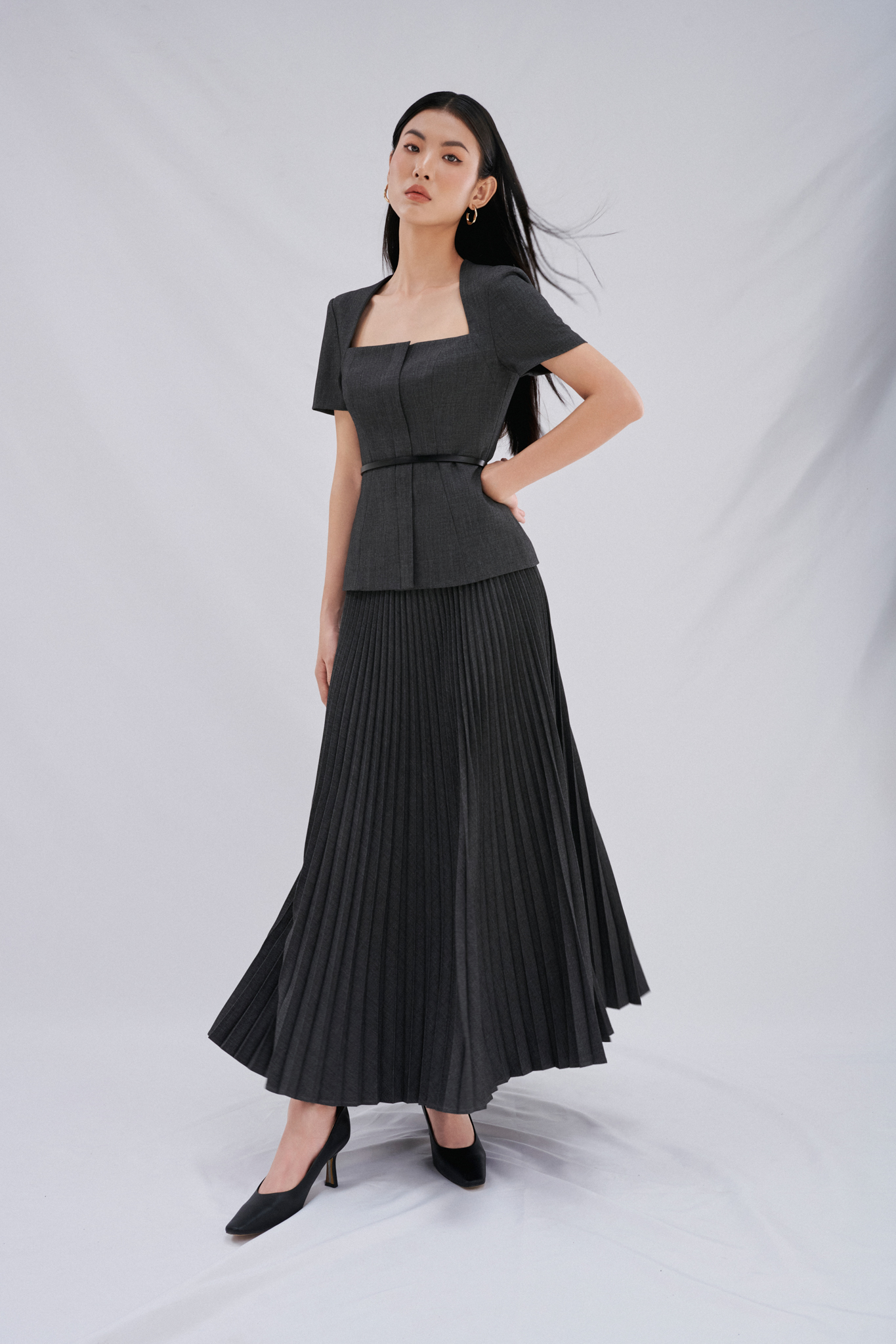 - Thông tin sản phẩm Daria Set với áo cổ vuông thiết kế phần cúp ngực cách điệu tạo nên nét quyến rũ đầy sức hút. Áo kiểu tay ngắn, cổ hình thang, hàng dây kéo ẩn sau lớp nẹp thân trước. Chân váy xếp ly được thiết kế tỉ mỉ, chỉn chu tới từng đường nét. Daria Top và Daria Skirt không chỉ là bộ trang phục mang đậm vẻ đẹp trung tính, mà thiết kế này còn làm trái tim các Quý cô xao xuyến bởi sự sang trọng và thanh lịch.