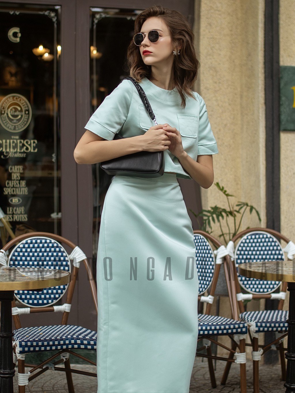 ✨Set áo váy xanh mint NGADO , váy nữ , set đồ nữ , Set áo chân váy
