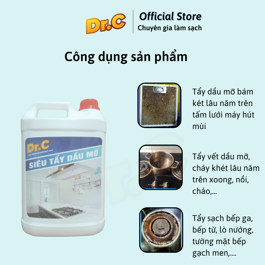 Dr.C Siêu tẩy dầu mỡ - LÀM SẠCH VẾT DẦU MỠ CỨNG DẦU