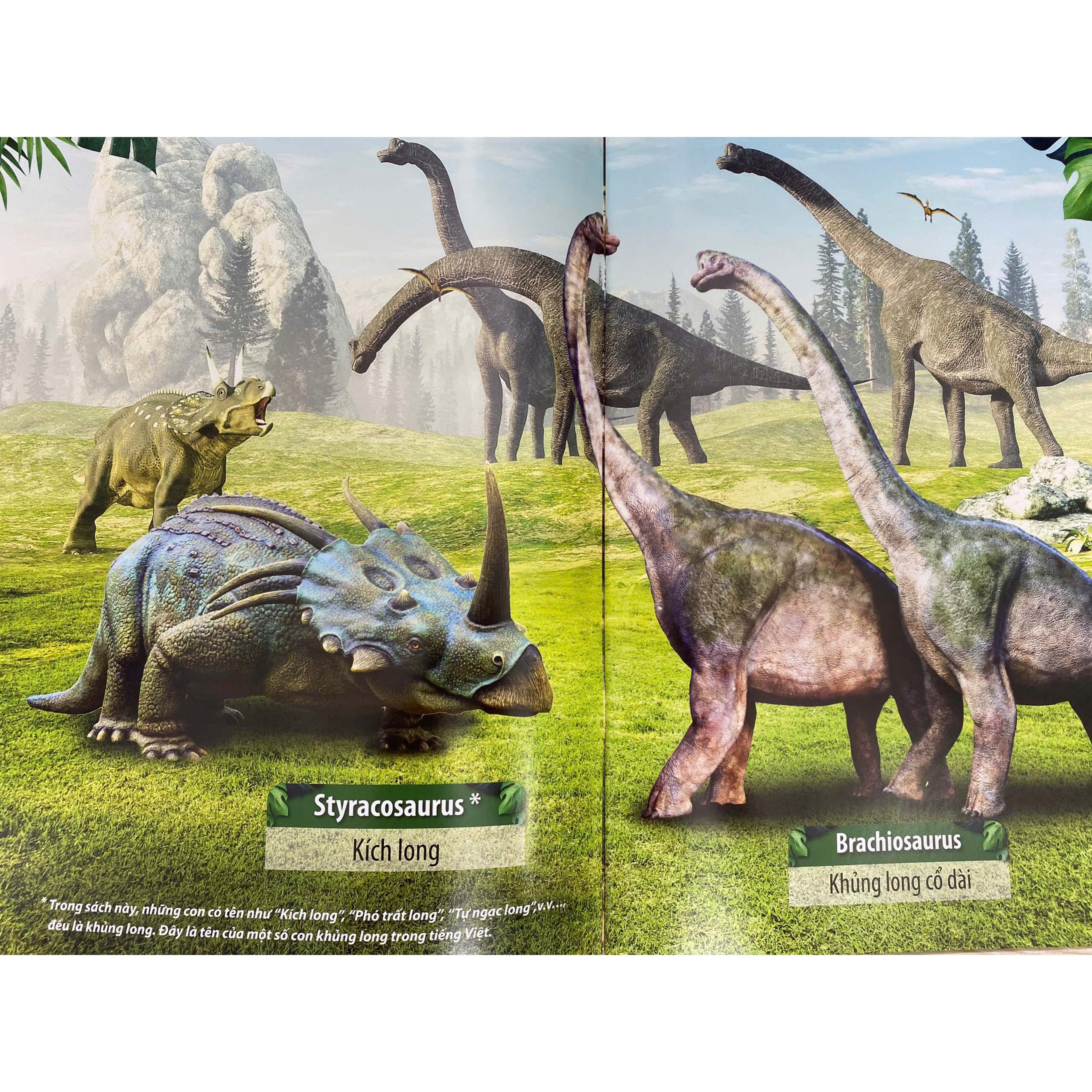 Giới thiệu sách Những bức ảnh sặc sỡ cùng các khung hình sống động sẽ tái hiện lại cuộc sốngThế Giới Khủng Long, đồng thời giúp bé phát triển kĩ năng quan sát, xây dựng vốn từ vựng tiếng Anh phong phú về Thế Giới Khủng Long.