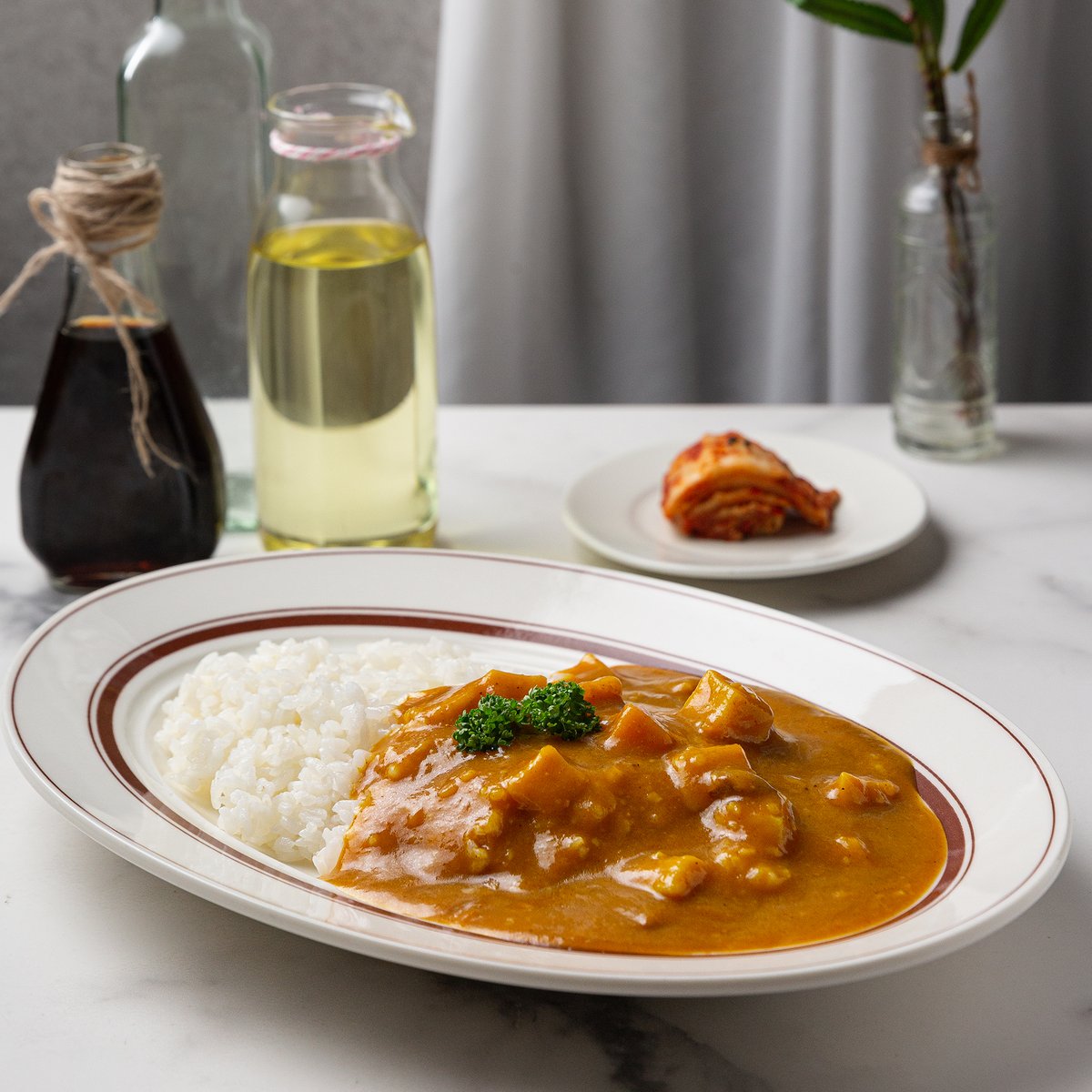 - Thành phần : nước, hành xay nhuyễn , trái cây cô đặc, cà rốt , khoai tây , chiết xuất xương bò , tinh bột khoai mì , bột cà ri , kem sữa , cà chua và các gia vị khác .