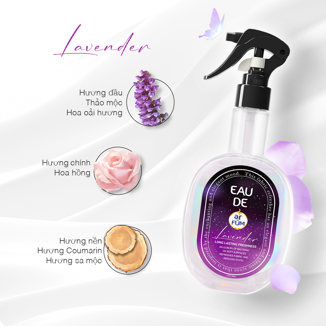 [Special Edition] Combo 2 Xịt thơm quần áo hương nước hoa cao cấp arFUM lưu hương lâu, khử mùi hiệu quả (250ml)   * Thích hợp sử dụng cho: sofa, rèm cửa, quần áo, thảm trải sàn, chăn ga gối đệm. Lưu ý: đối với các loại vải không thể giặt (lụa, tơ tằm, vải cupra, và vải acetate) hoặc không thấm nước, hãy thử dùng trên vùng khuất trước vì nó có thể để lại vệt đốm nước. Không xịt lên sản phẩm làm từ da và bề mặt sơn.   Thành phần: Water, Alcohol, Propylene Glycol, PEG-60 Hydrogenated Castor Oil, Fragrance, Glycerin.   Bảo quản: Ở nhiệt độ phòng, nơi khô ráo thoáng mát và tránh ánh sáng trực tiếp.    Cảnh báo: Tránh xa tầm tay trẻ em. Không được uống, nuốt. Tránh tiếp xúc với mắt. Nếu không may bị văng vào mắt, hãy rửa sạch bằng nhiều nước. Không hít vòi xịt. Nếu bạn có làn da nhạy cảm hoặc bị tổn thương, hãy đeo găng tay. Nếu nuốt phải, hãy tìm kiếm sự chăm sóc y tế ngay lập tức và xuất trình nhãn hoặc hộp đựng này. Nếu không may bị dính vào tay,  hãy rửa sạch da bằng nước. Rửa tay sau khi sử dụng.