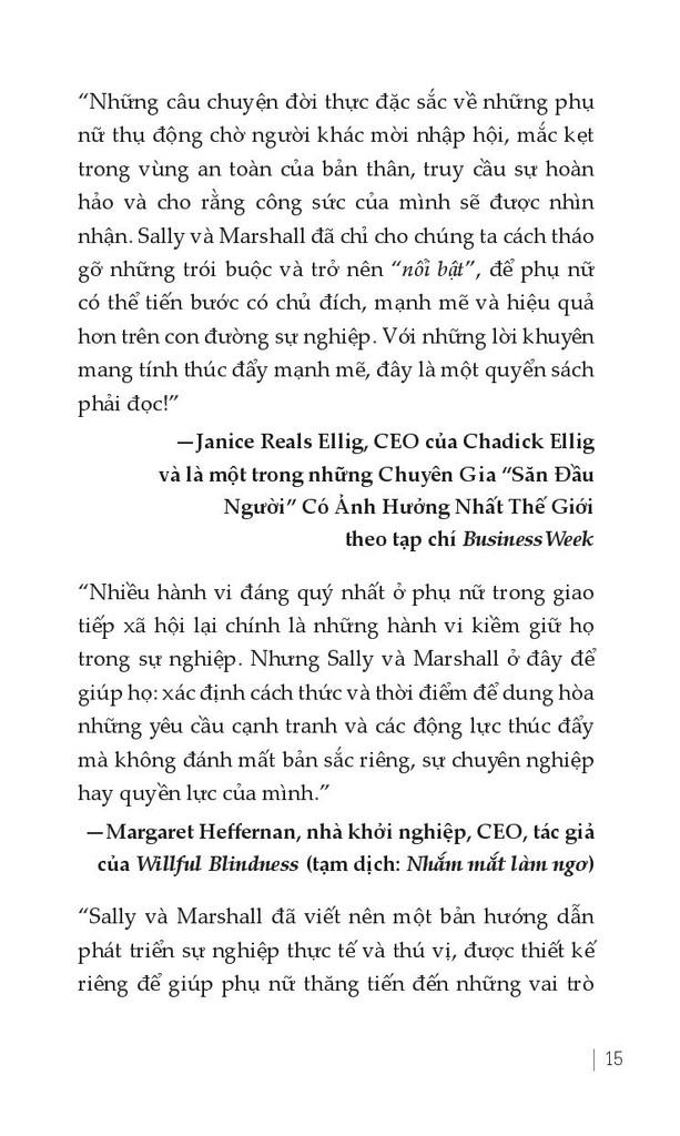Chỉ mặt đặt tên và triệt bỏ tận gốc những thói quen tai hại ấy trong chính mỗi người phụ nữ là mục tiêu của cuốn sách “Sự trỗi dậy của phụ nữ”, đứa con tinh thần được mong đợi của các tác giả Sally Helgesen và Marshall Goldsmith, hai trong số những tên tuổi nổi tiếng nhất trong lĩnh vực khai vấn cho các nhà lãnh đạo trên thế giới.